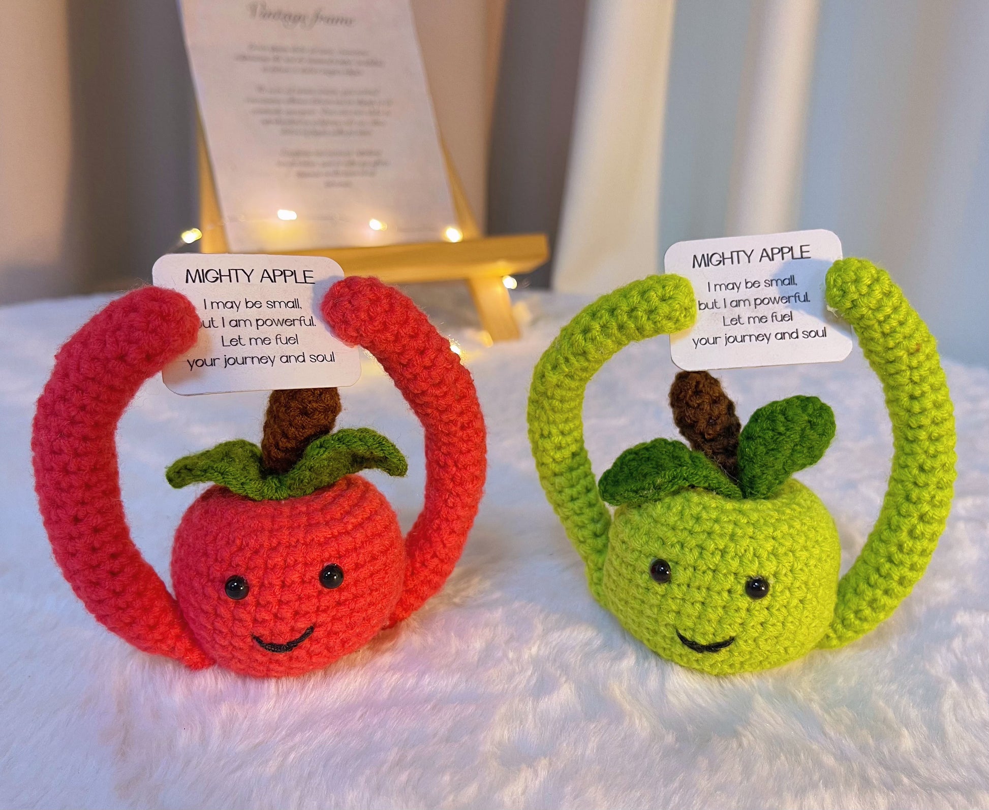 紅色強壯蘋果提醒我們,在產生影響力時,大小並不重要。配著語錄「我或許渺小,但我力量強大。讓我為你的旅程和靈魂加油打氣」,這款玩偶非常適合任何需要一點自信和動力提升的人。