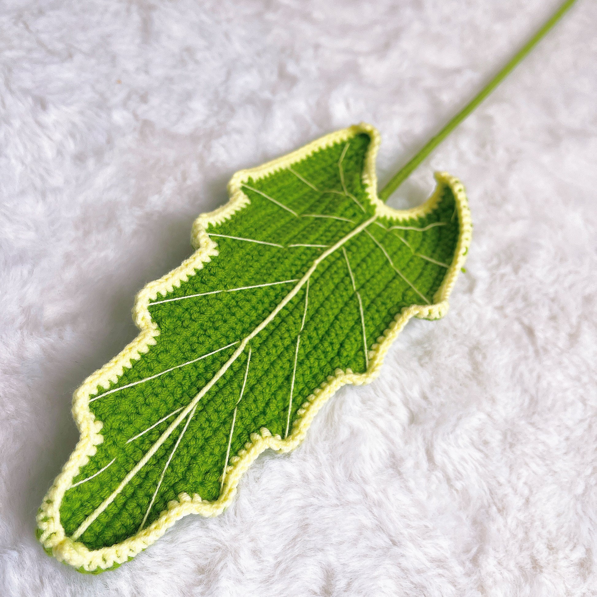 手工鉤織觀音葉花束—— 鮮活翠綠與明黃色調交融,栩栩如生的葉飾