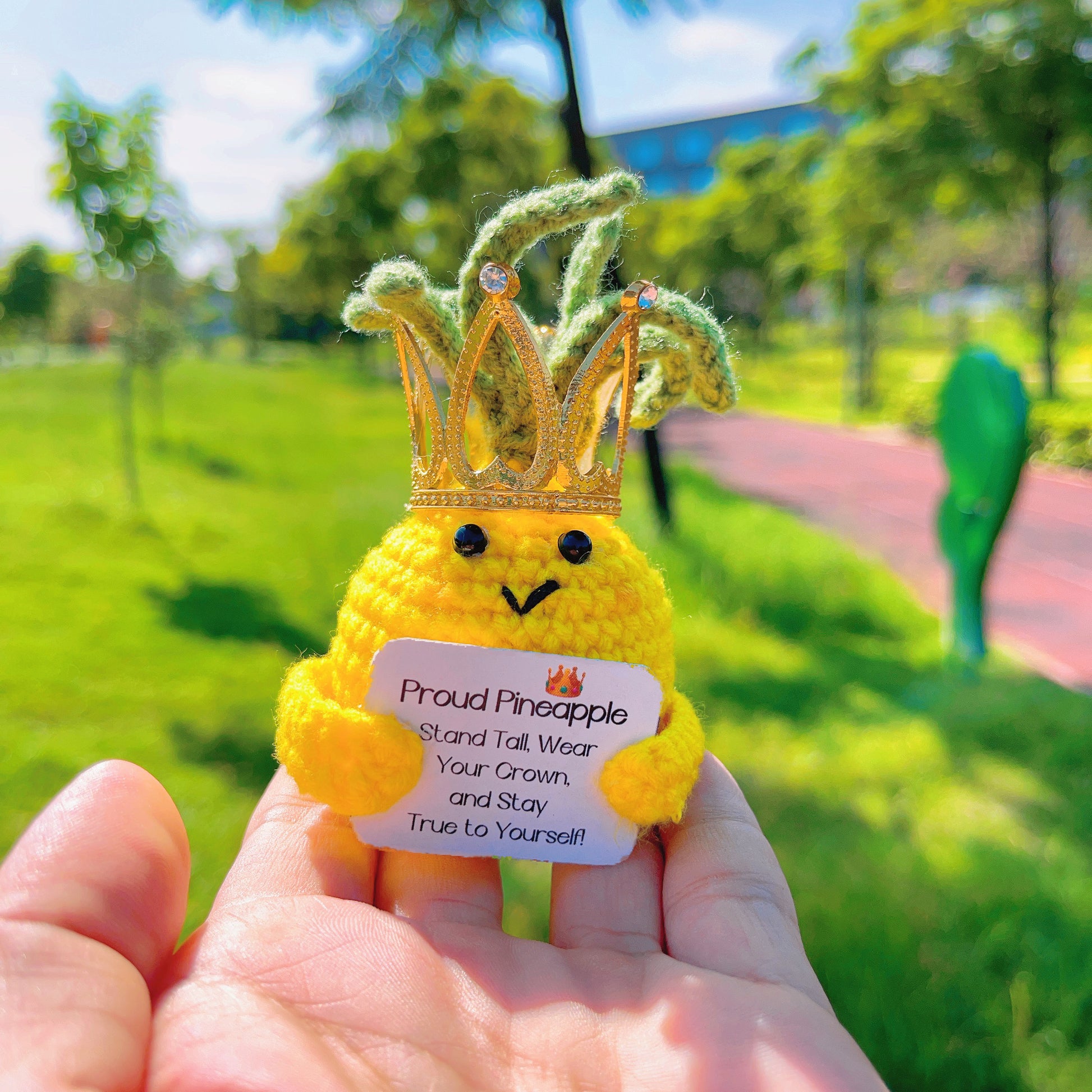 手工鉤針編織超驕傲鳳梨正能量毛絨玩偶(附超燃正能量語錄,可客製/訂製專屬文字)