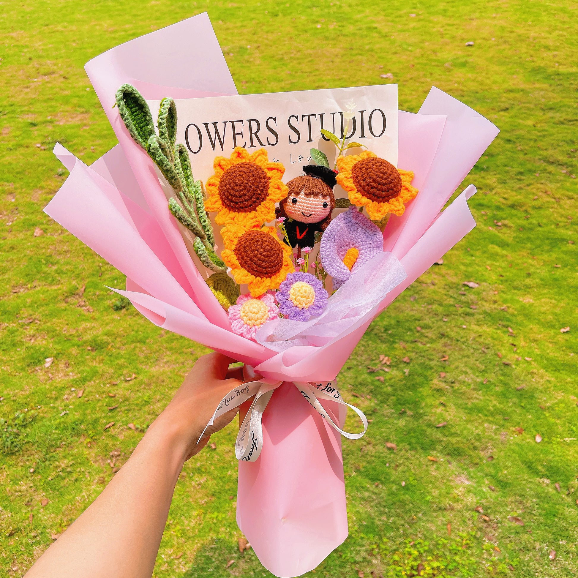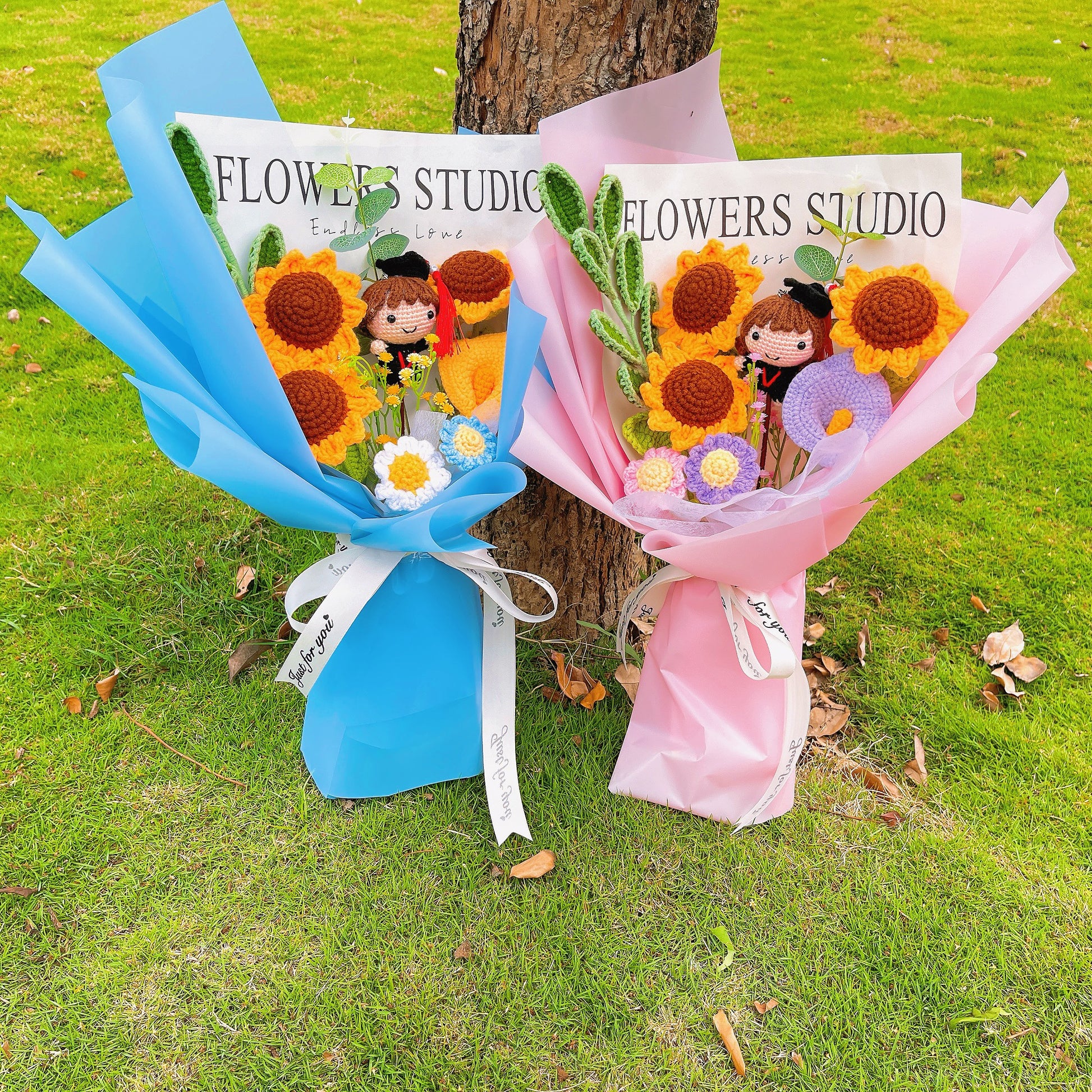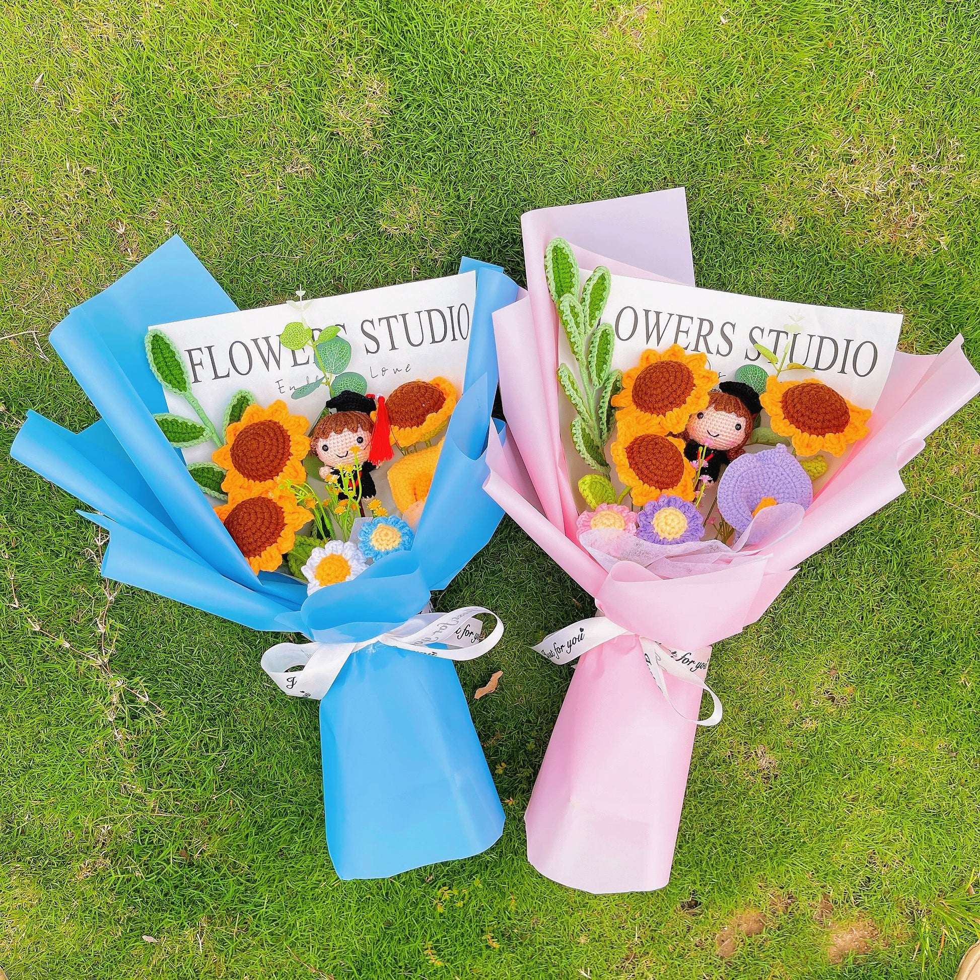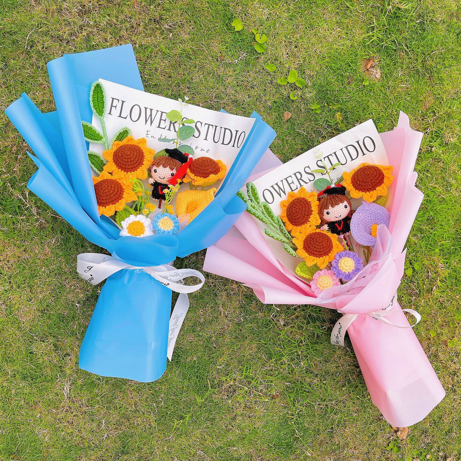 以我們精緻的手工鉤織畢業花束,慶祝這歡欣鼓舞的畢業時刻。這些精心設計的花束提供兩款令人驚豔的選擇,專為男女畢業生量身打造。