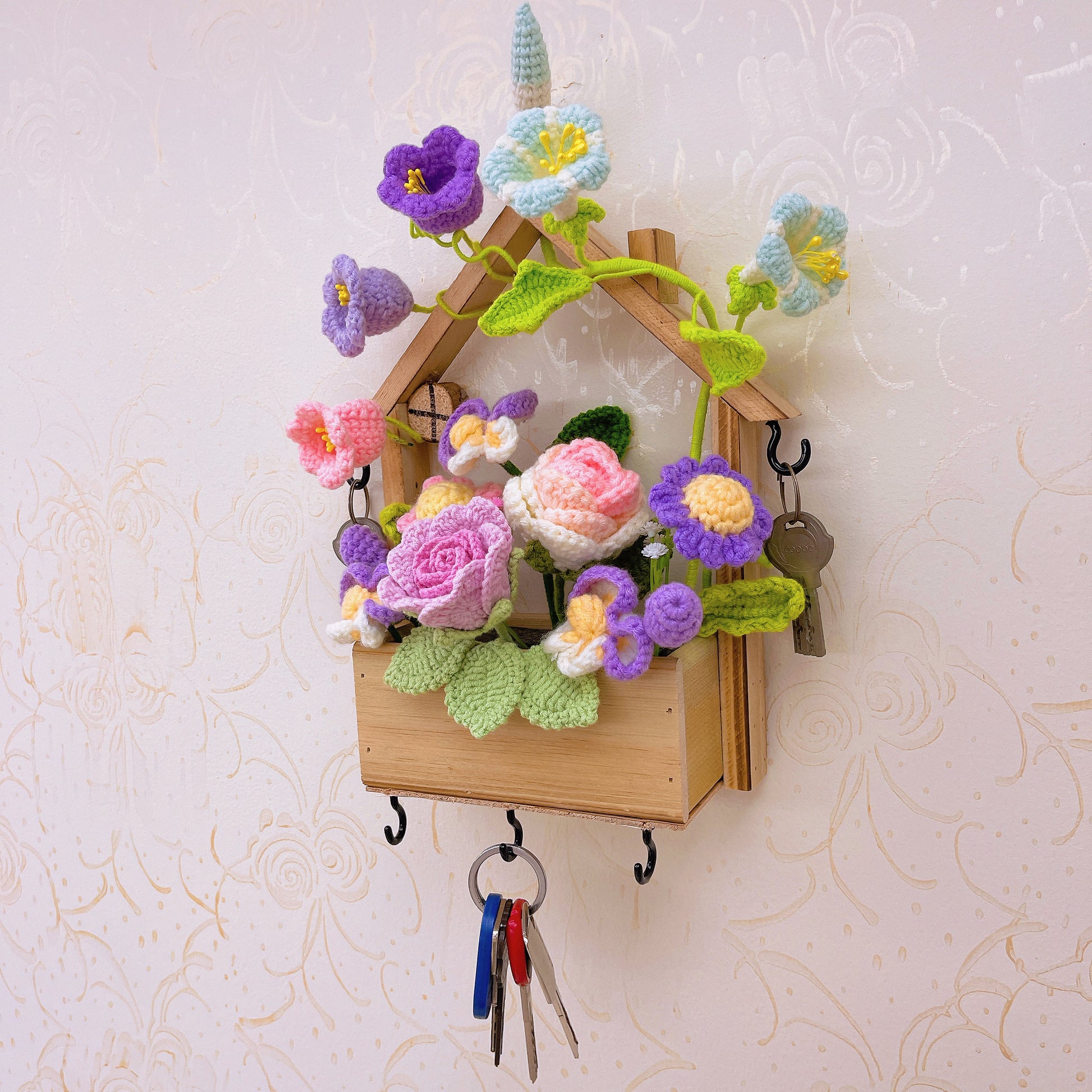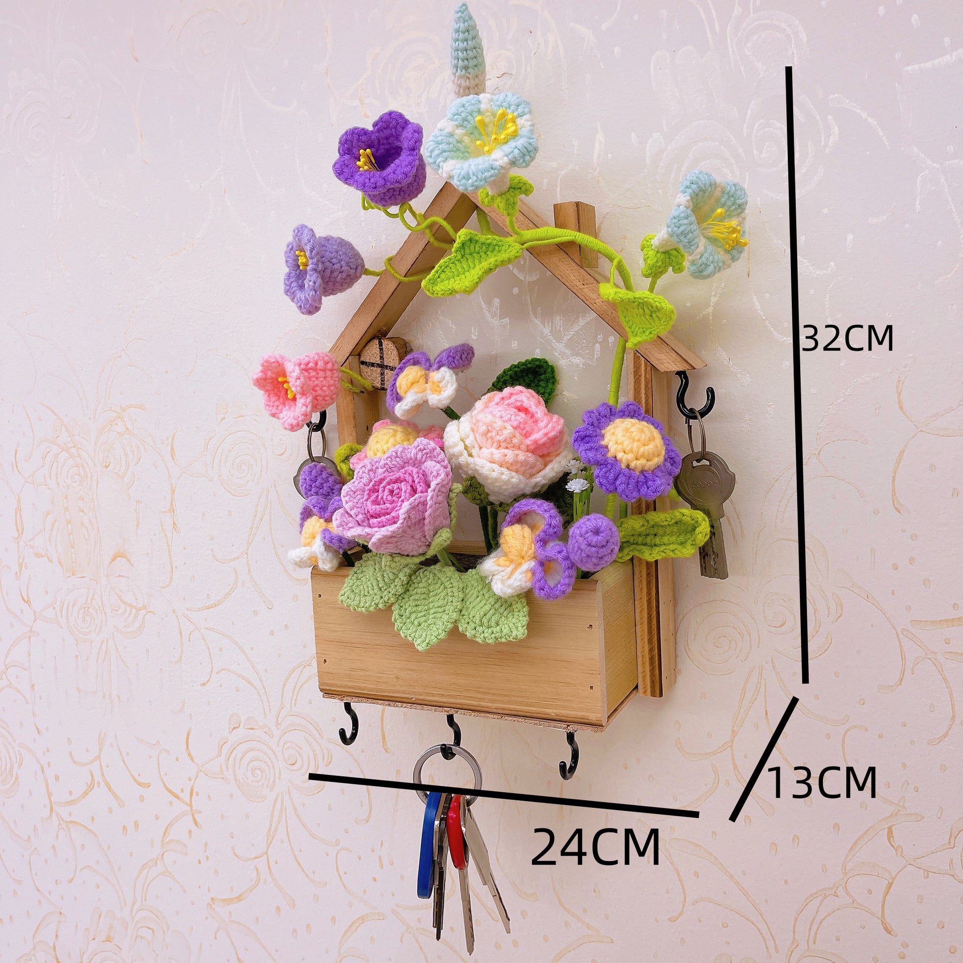 這款壁飾不僅能裝點您的家居,還能為您的日常生活增添便利。它配備了五個實用的鉤子,專為安全懸掛您的鑰匙而設計。將它放置在入口附近,確保您在出門或回家時,鑰匙總是隨手可得。醒目的花卉佈置不僅為您的周遭環境增添一抹優雅,還能溫柔提醒您出門前別忘了帶鑰匙。
