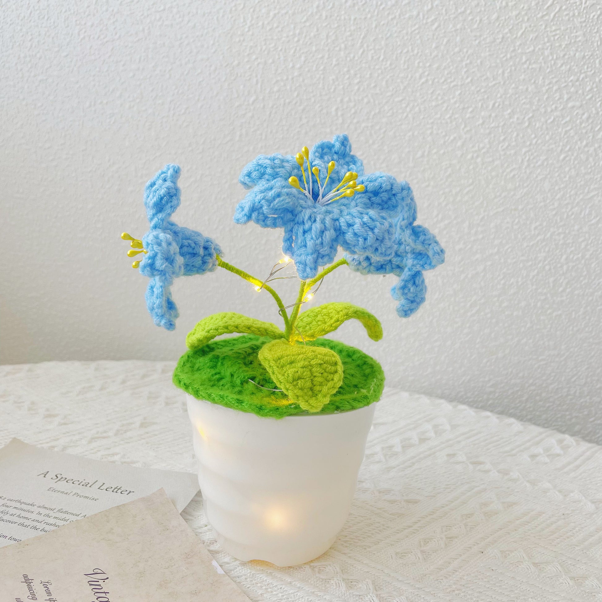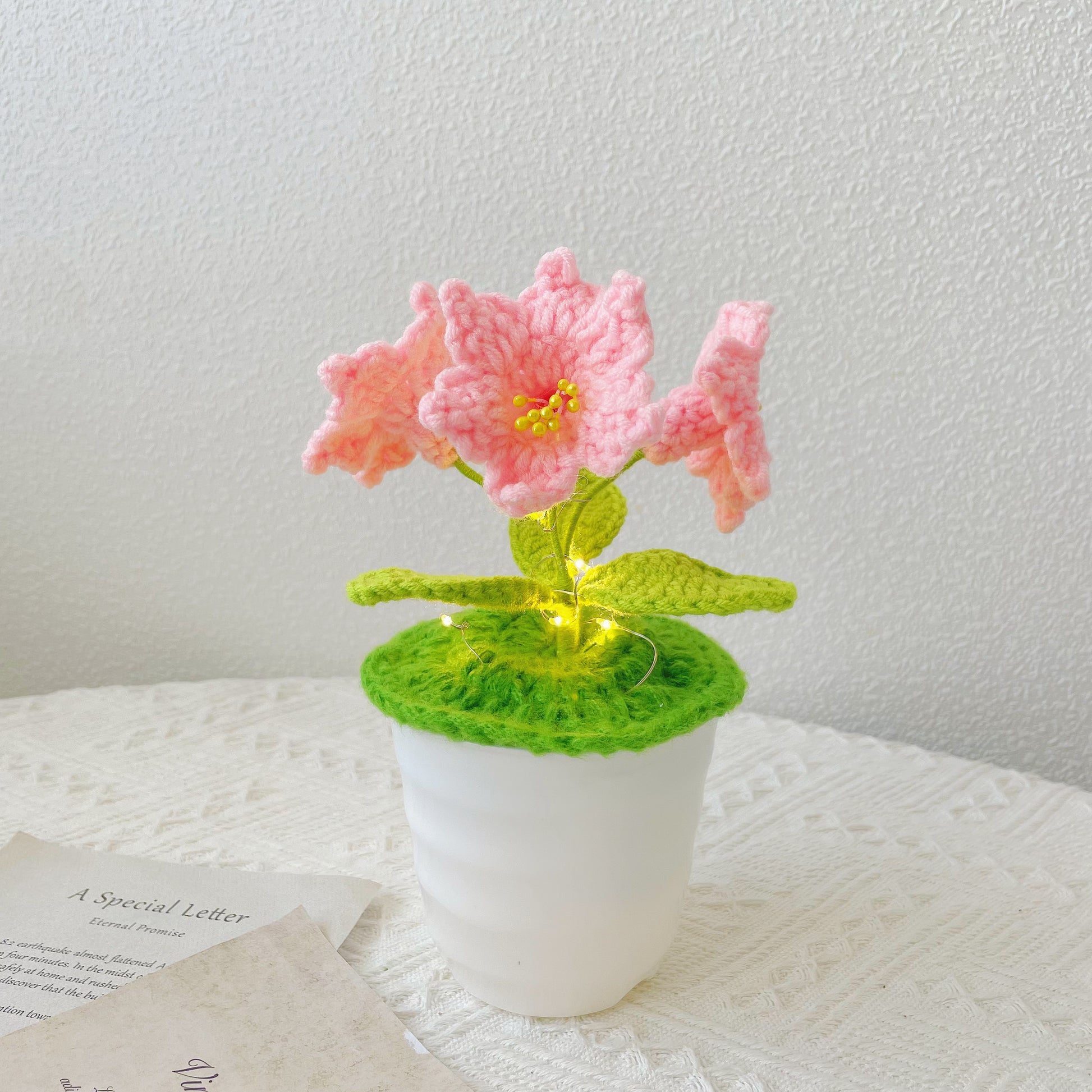 手工絎鉤百合盆栽(含LED燈):逼真仿真花卉,打造獨特家居裝飾,是贈予植物愛好者的完美禮物,手工DIY心意之選