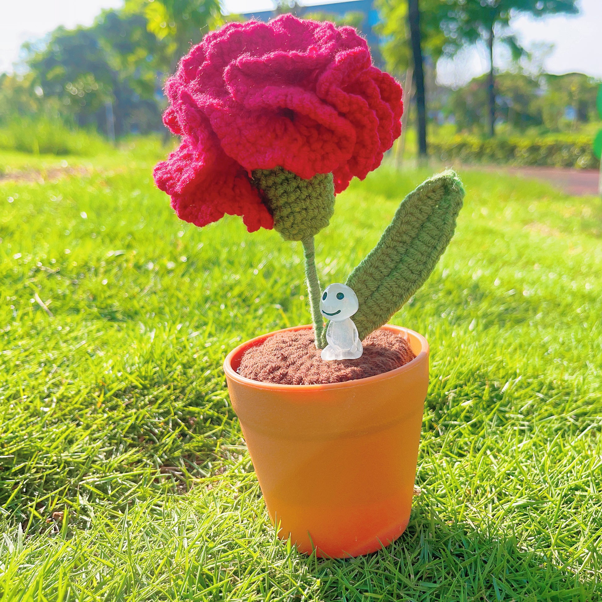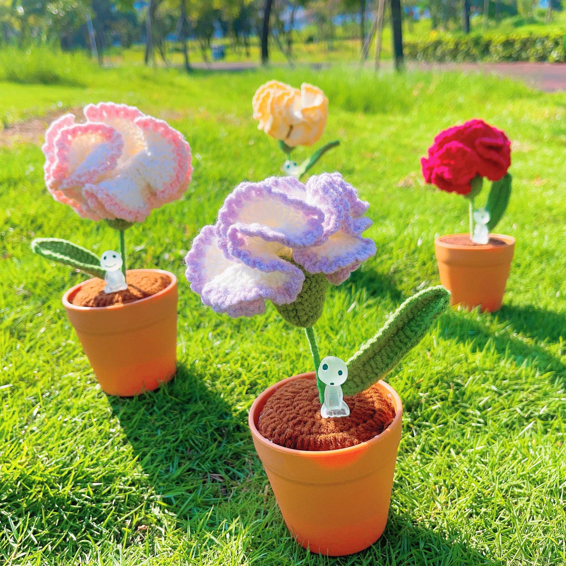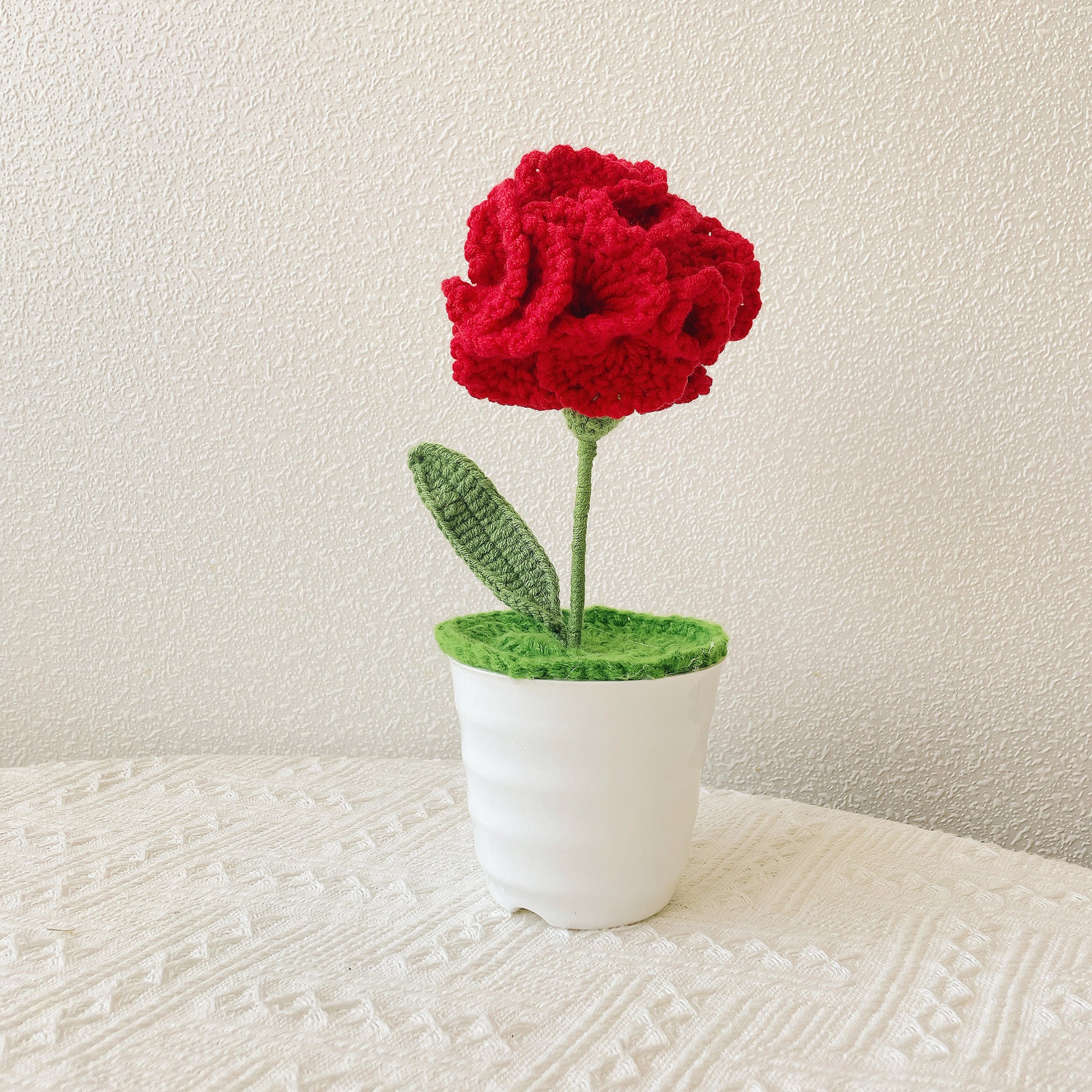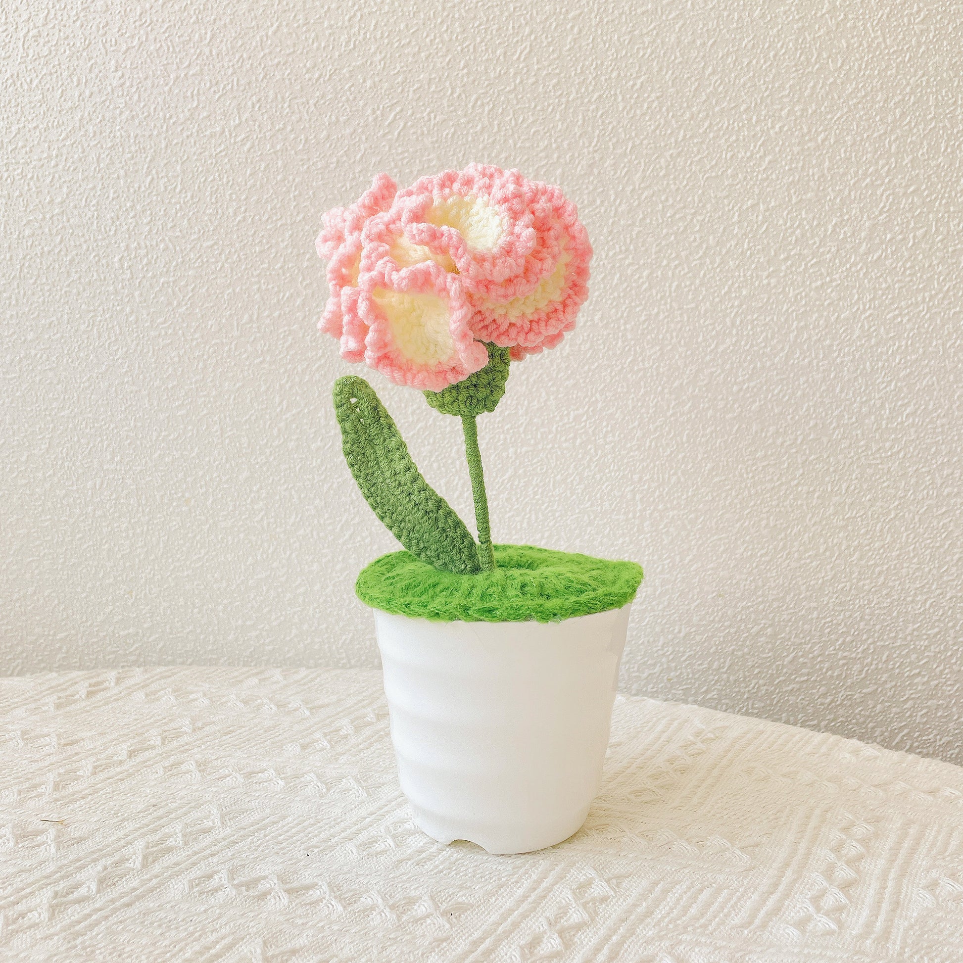 手工鉤針編織康乃馨盆栽 - 逼真仿真花 - 獨特家居裝飾 - 植物愛好者的完美禮物 - 手工製作