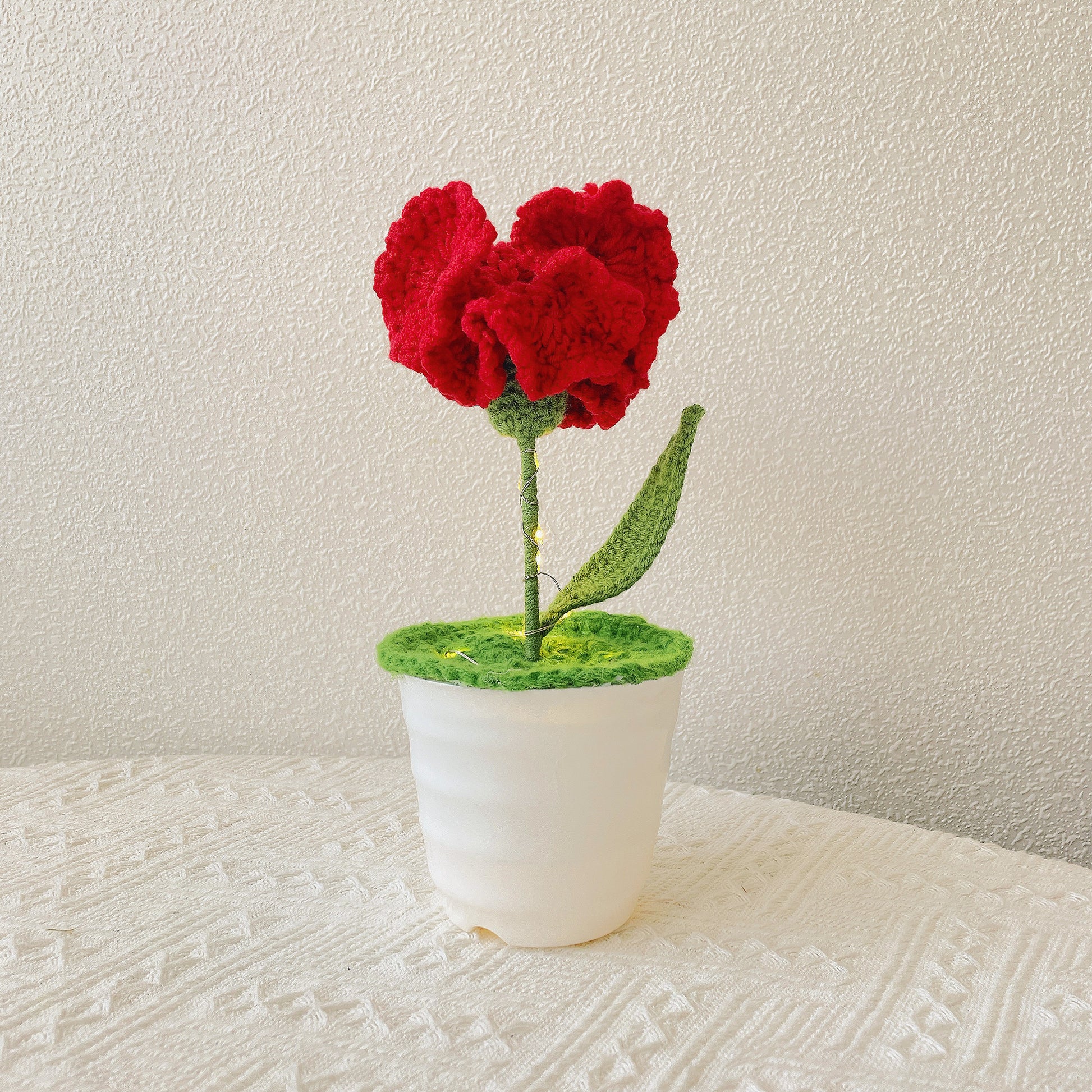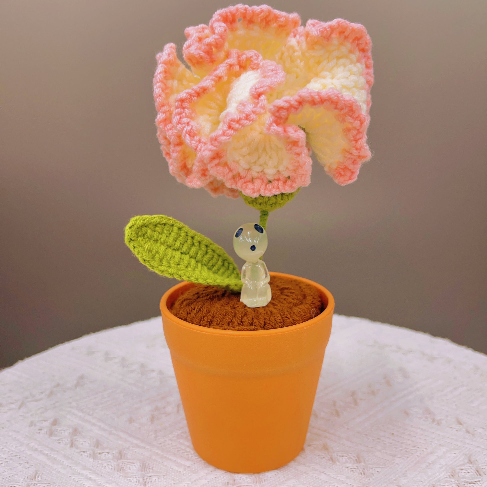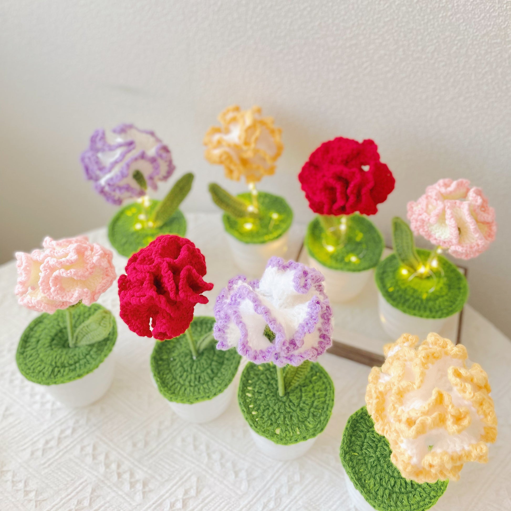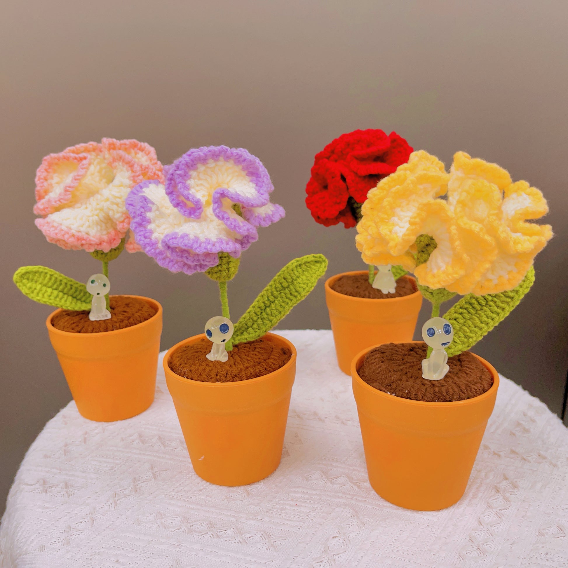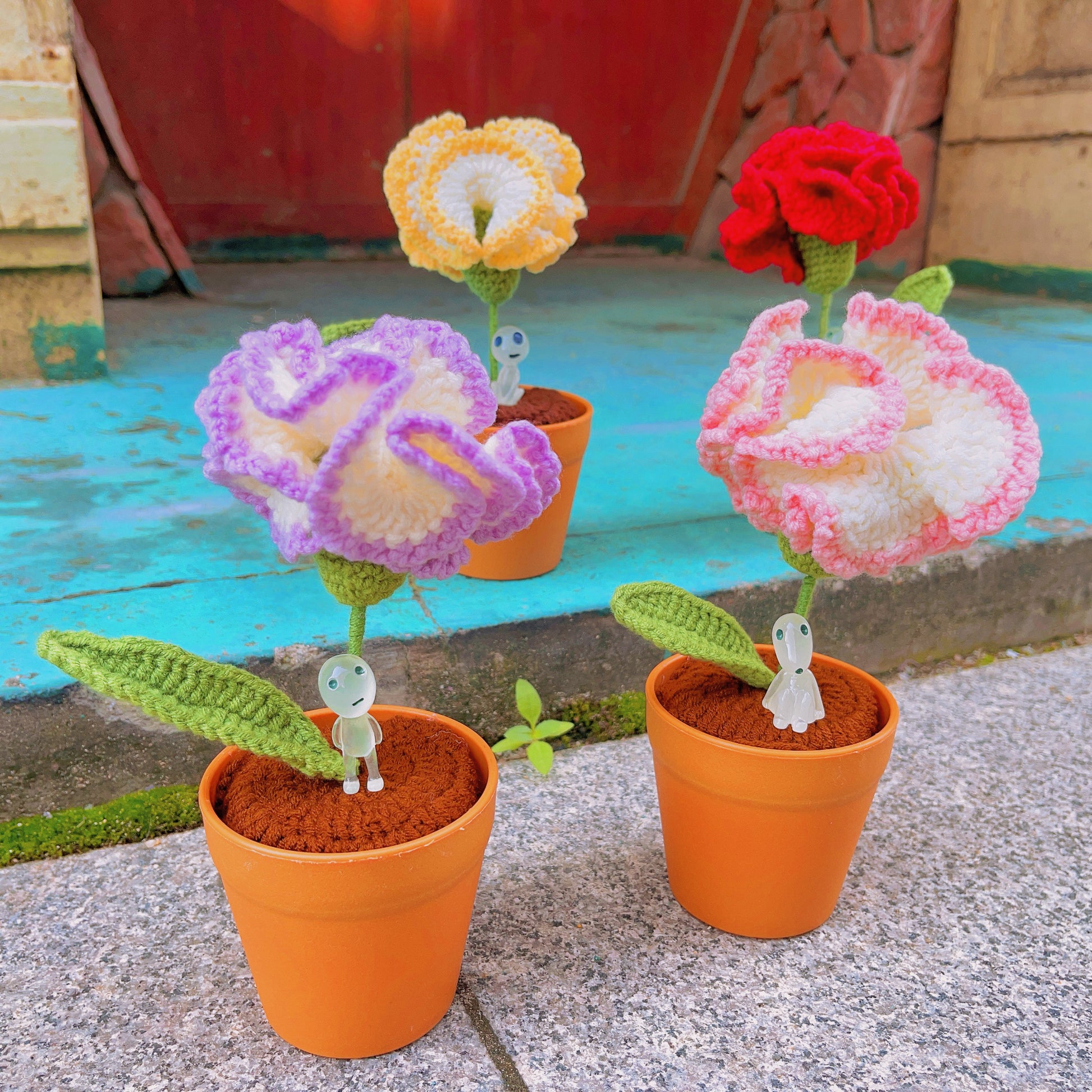 手工鉤針編織康乃馨盆栽 - 逼真仿真花 - 獨特家居裝飾 - 植物愛好者的完美禮物 - 手工製作