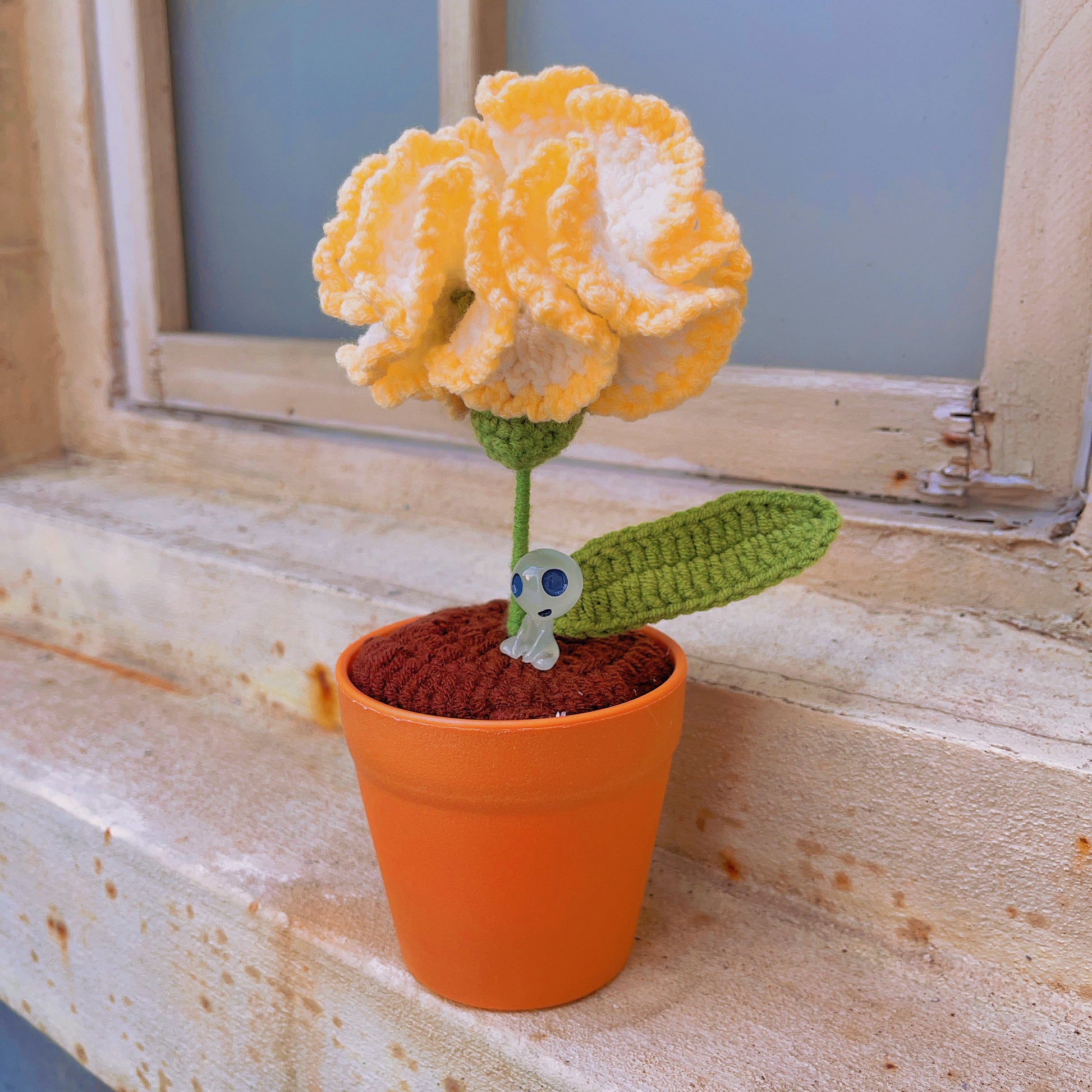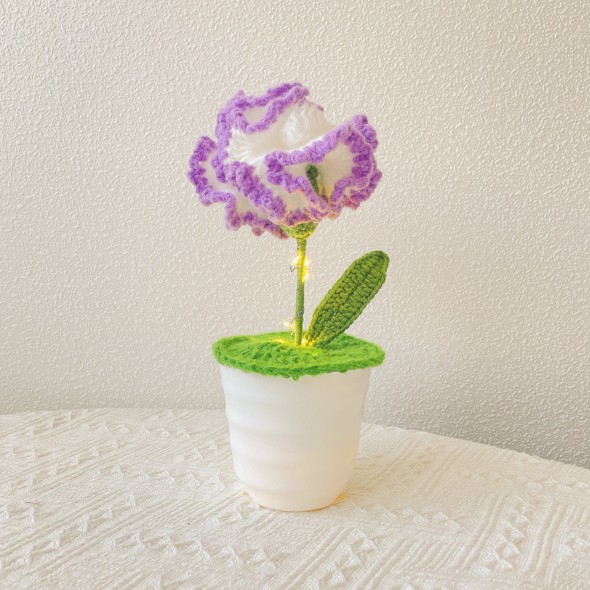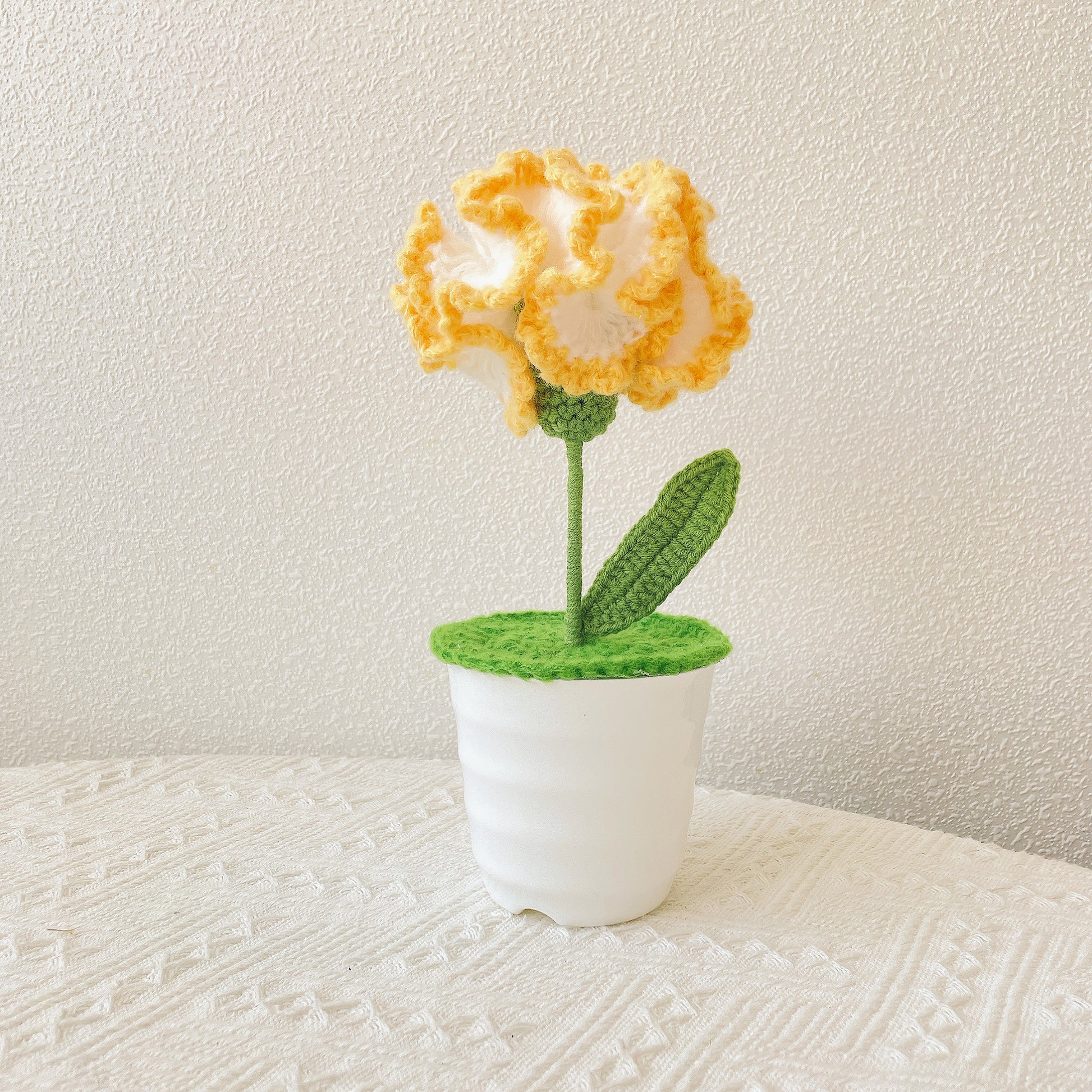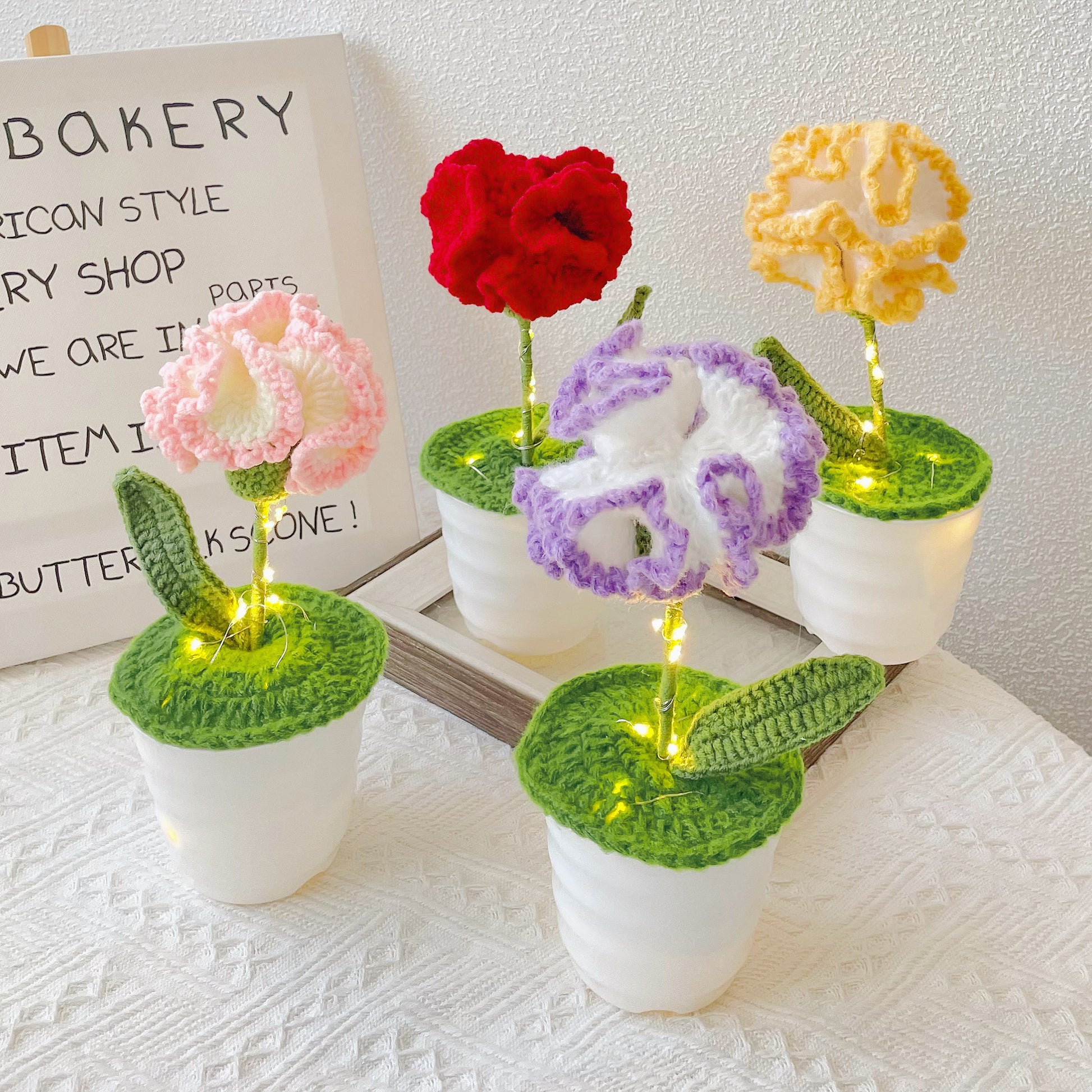 手工鉤針編織康乃馨盆栽 - 逼真仿真花 - 獨特家居裝飾 - 植物愛好者的完美禮物 - 手工製作