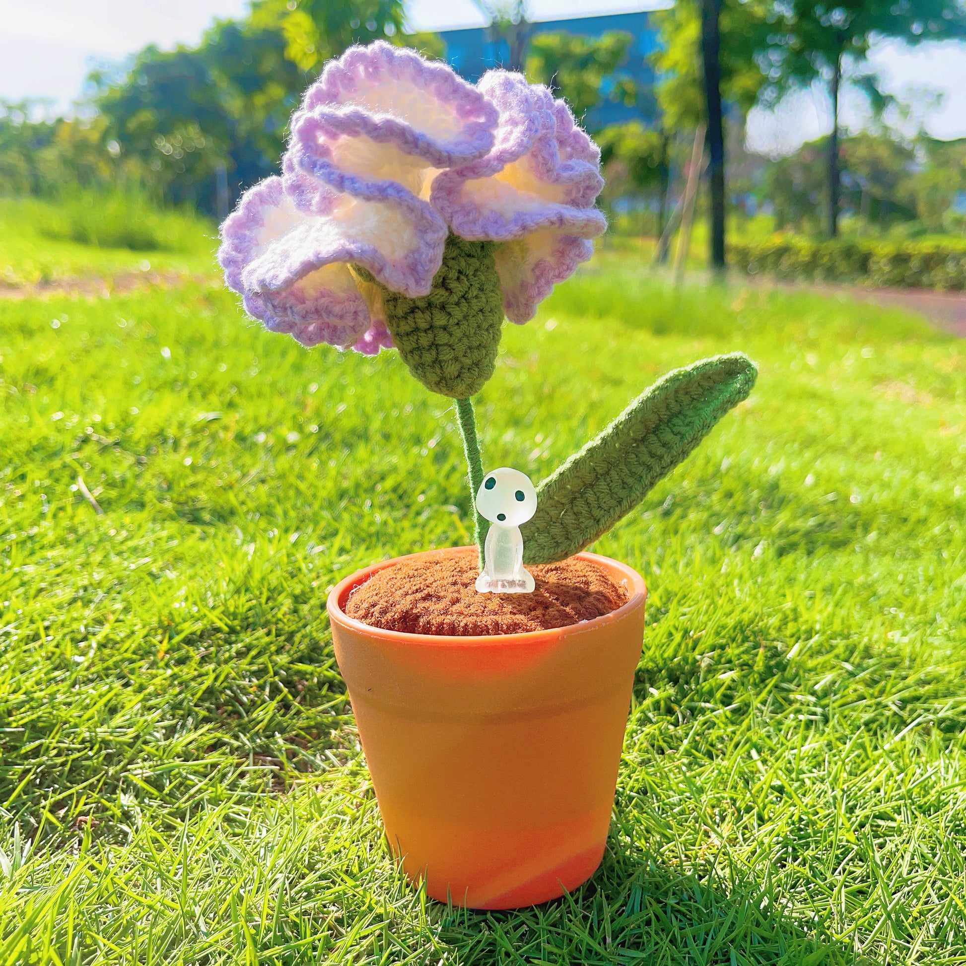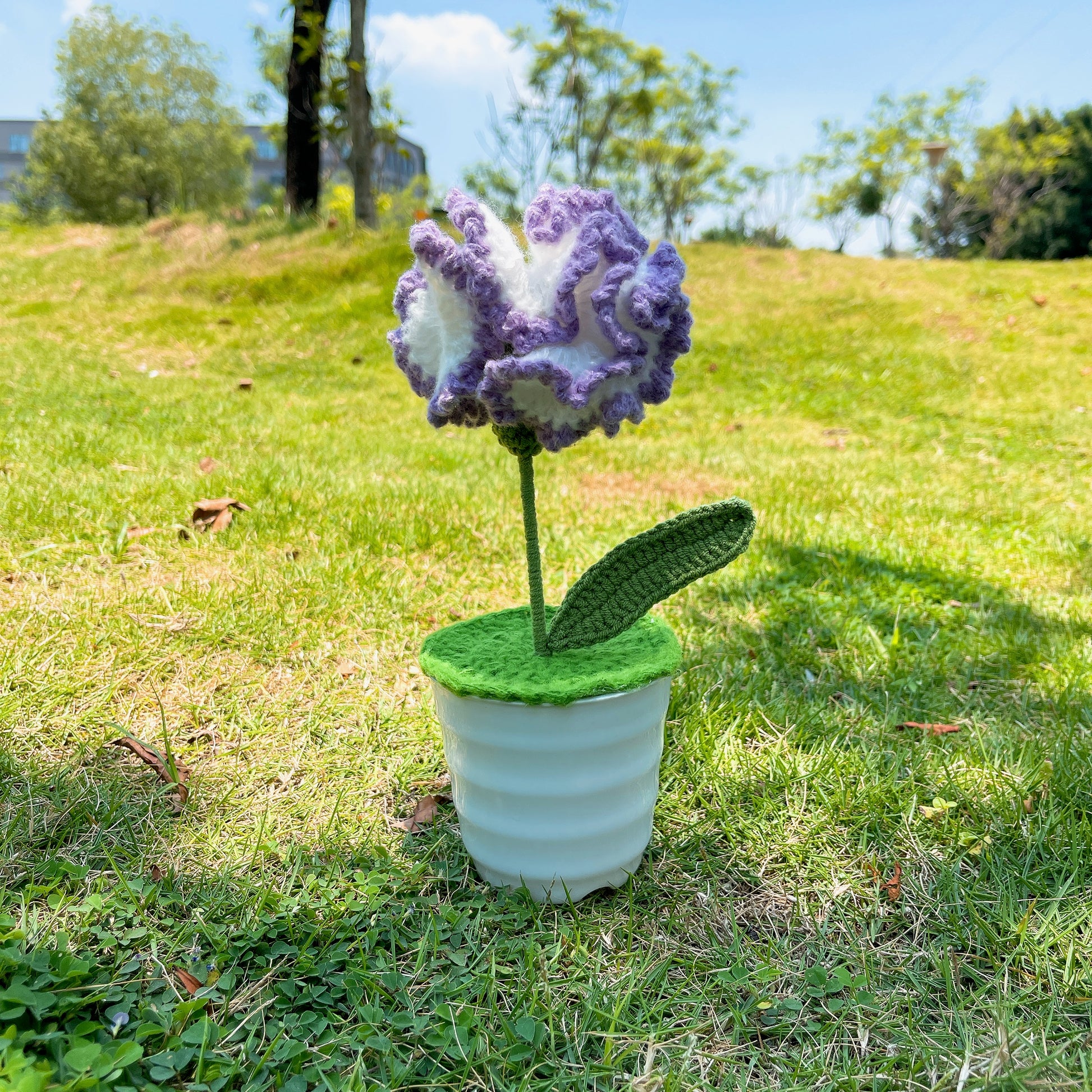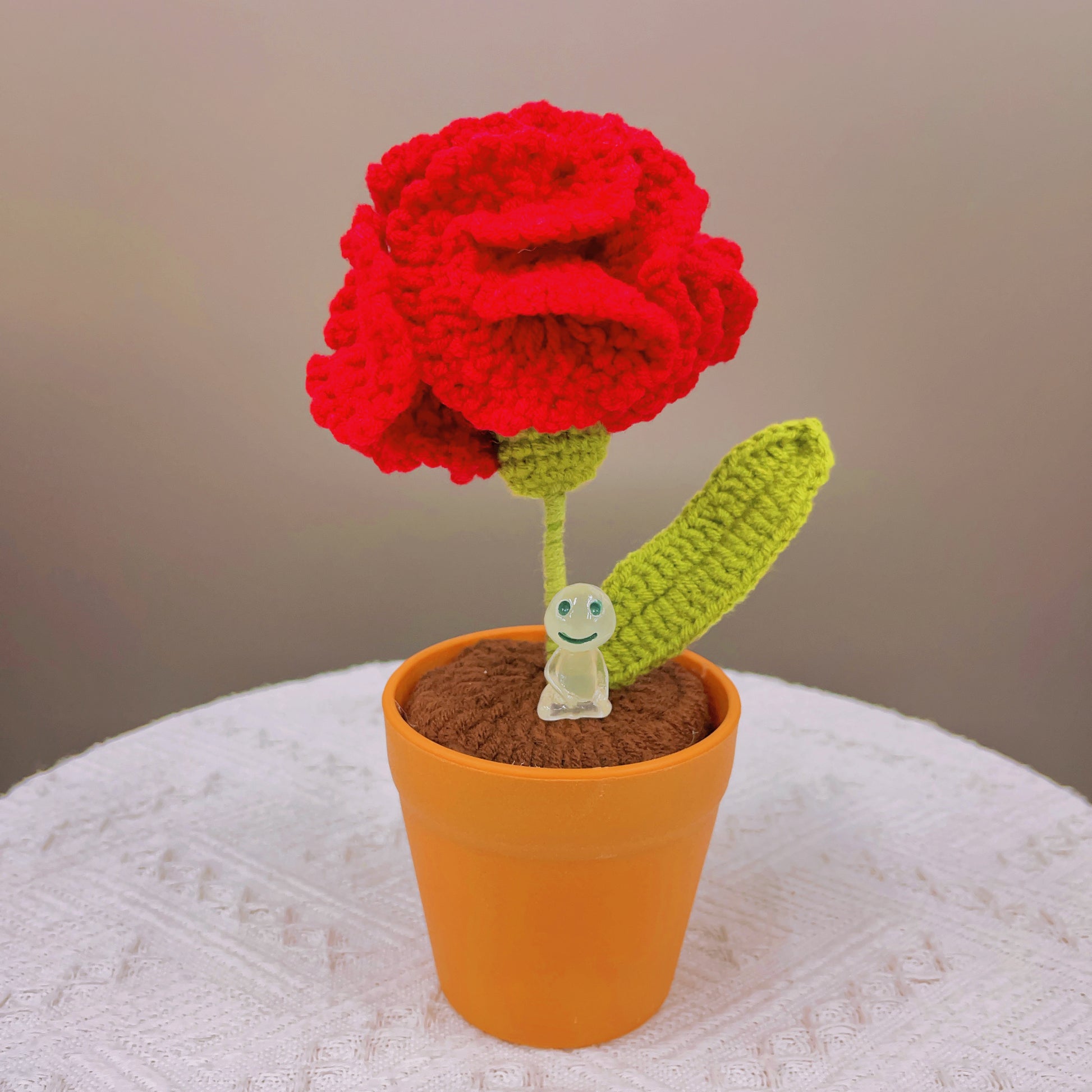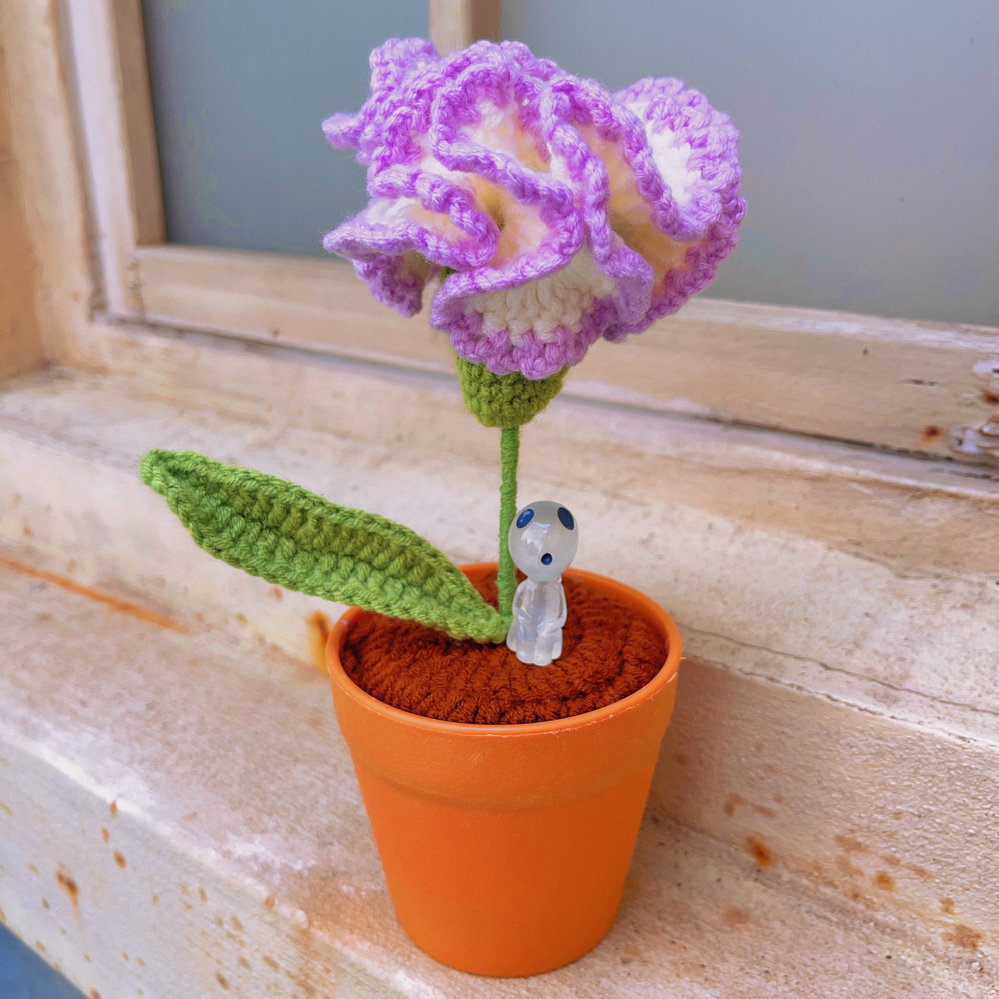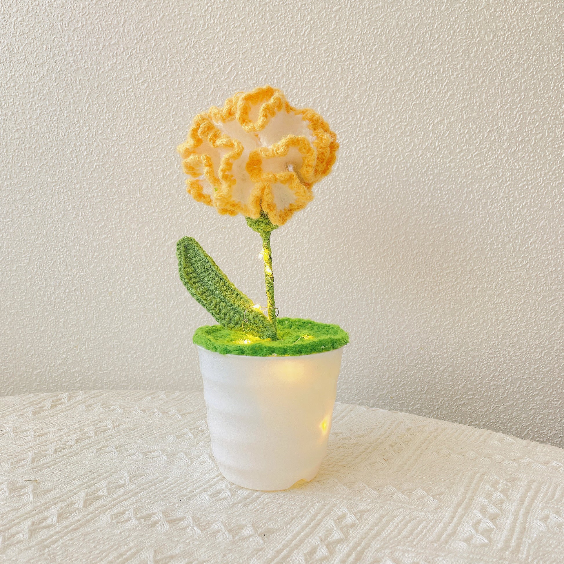 手工鉤針編織康乃馨盆栽 - 逼真仿真花 - 獨特家居裝飾 - 植物愛好者的完美禮物 - 手工製作