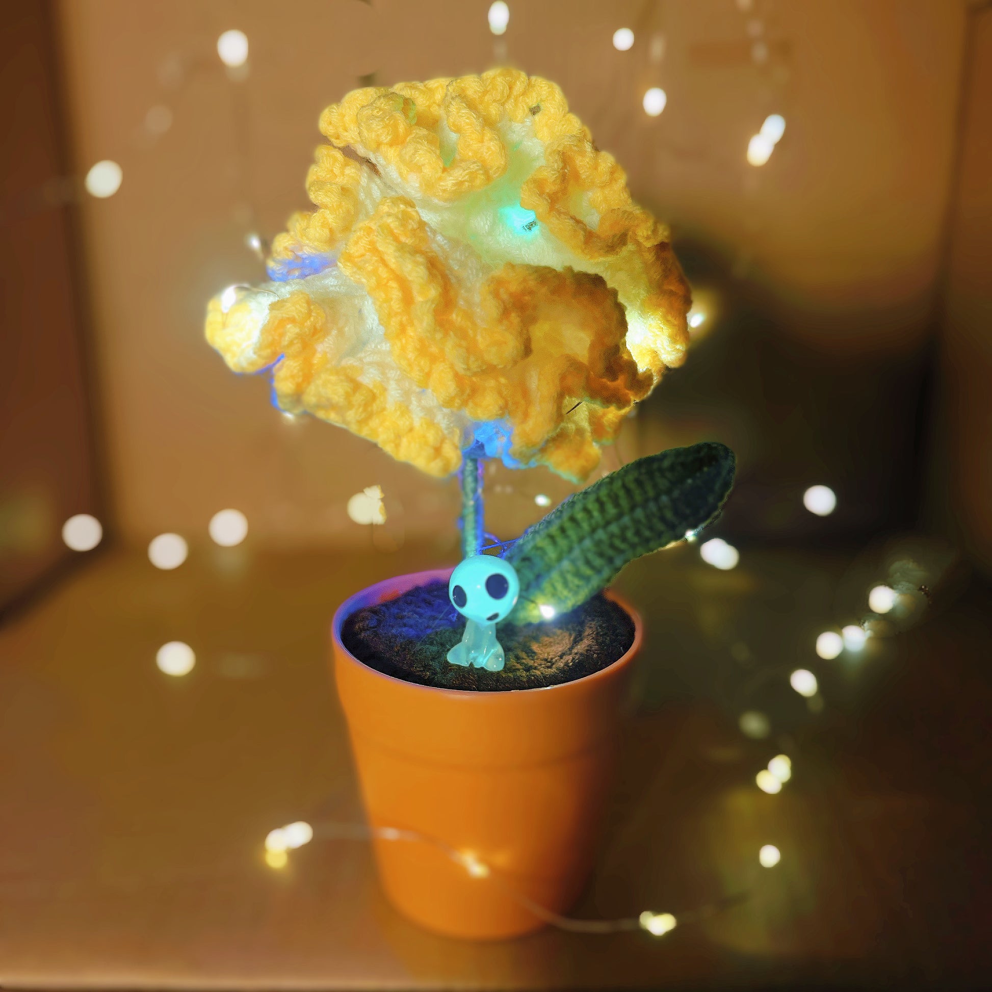 手工鉤針編織向日葵與蓬鬆花朵花束——心意禮物·家居擺飾中心裝飾