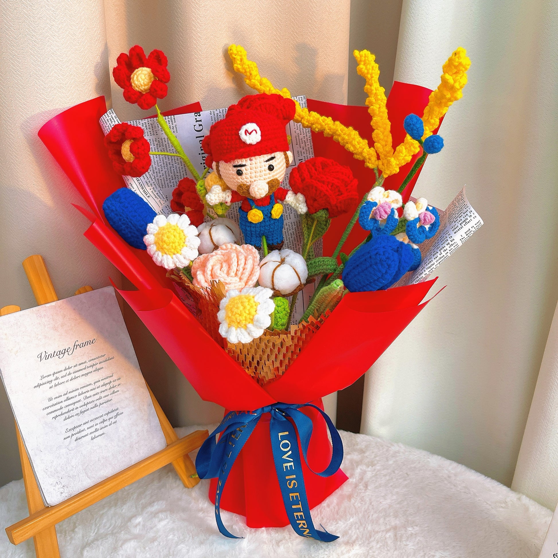 手工鉤針馬里奧主題花束 - 玫瑰、雛菊與蘭花|生日/週年紀念/節慶過敏友善禮物