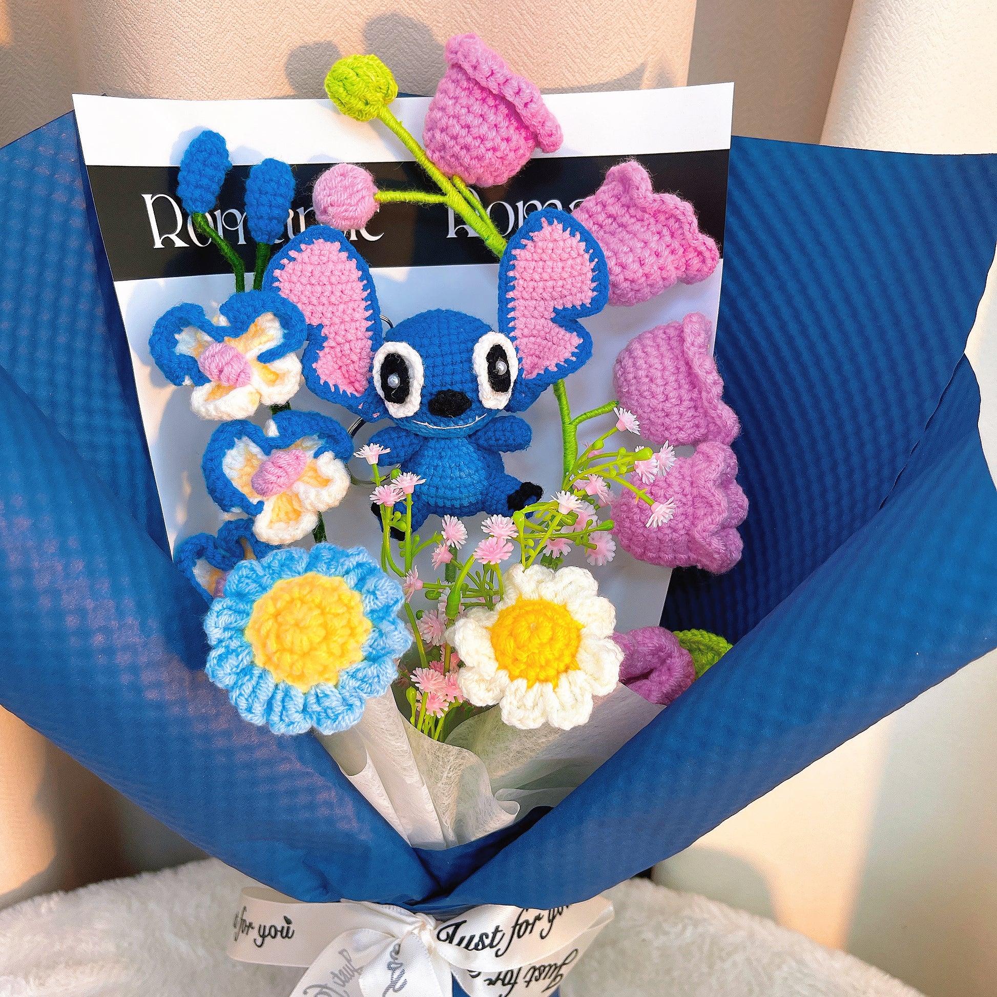 手工鉤針史迪奇主題花束 - 蘭花鈴蘭小菊,低過敏畢業禮物