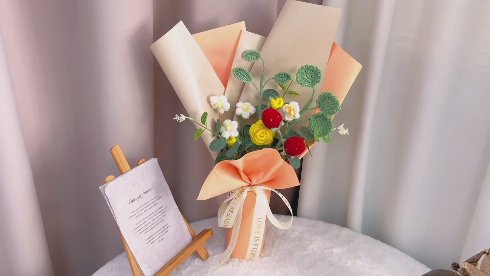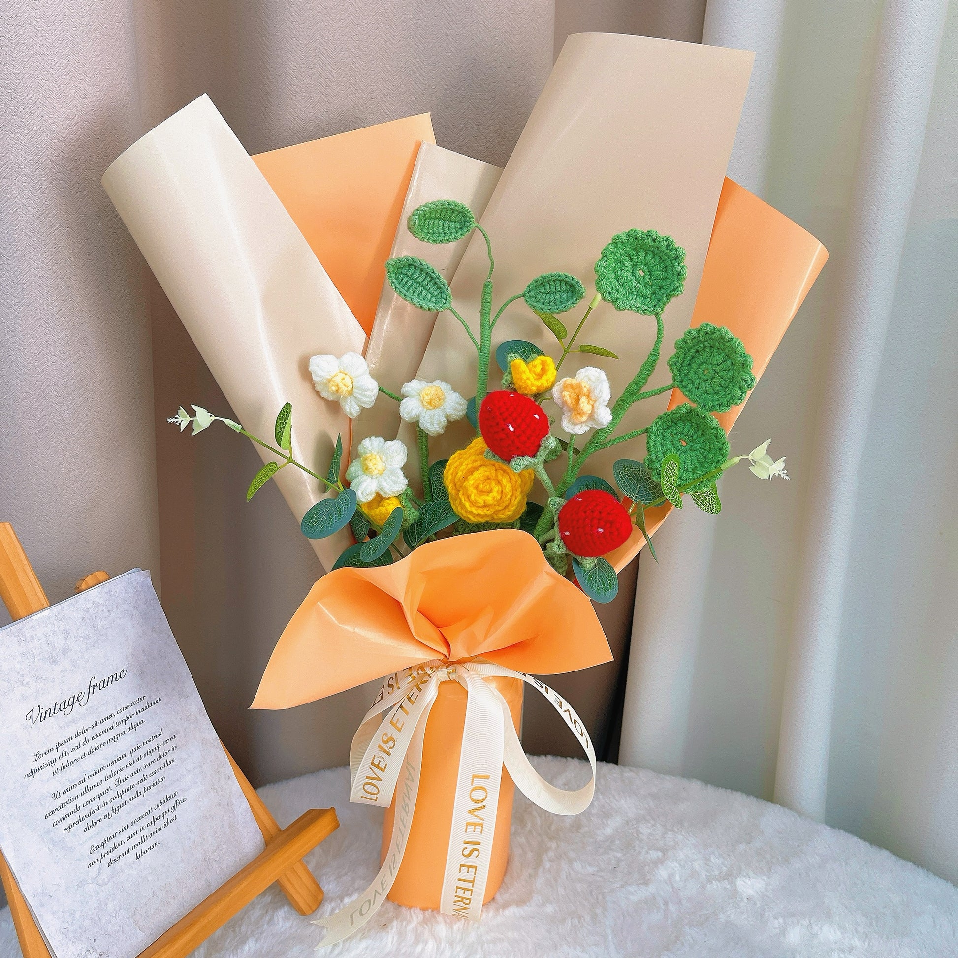 手工鉤針草莓包裝花束 - 情人節禮物、女友生日禮物、週年紀念禮物、妻子禮物、特別禮物
