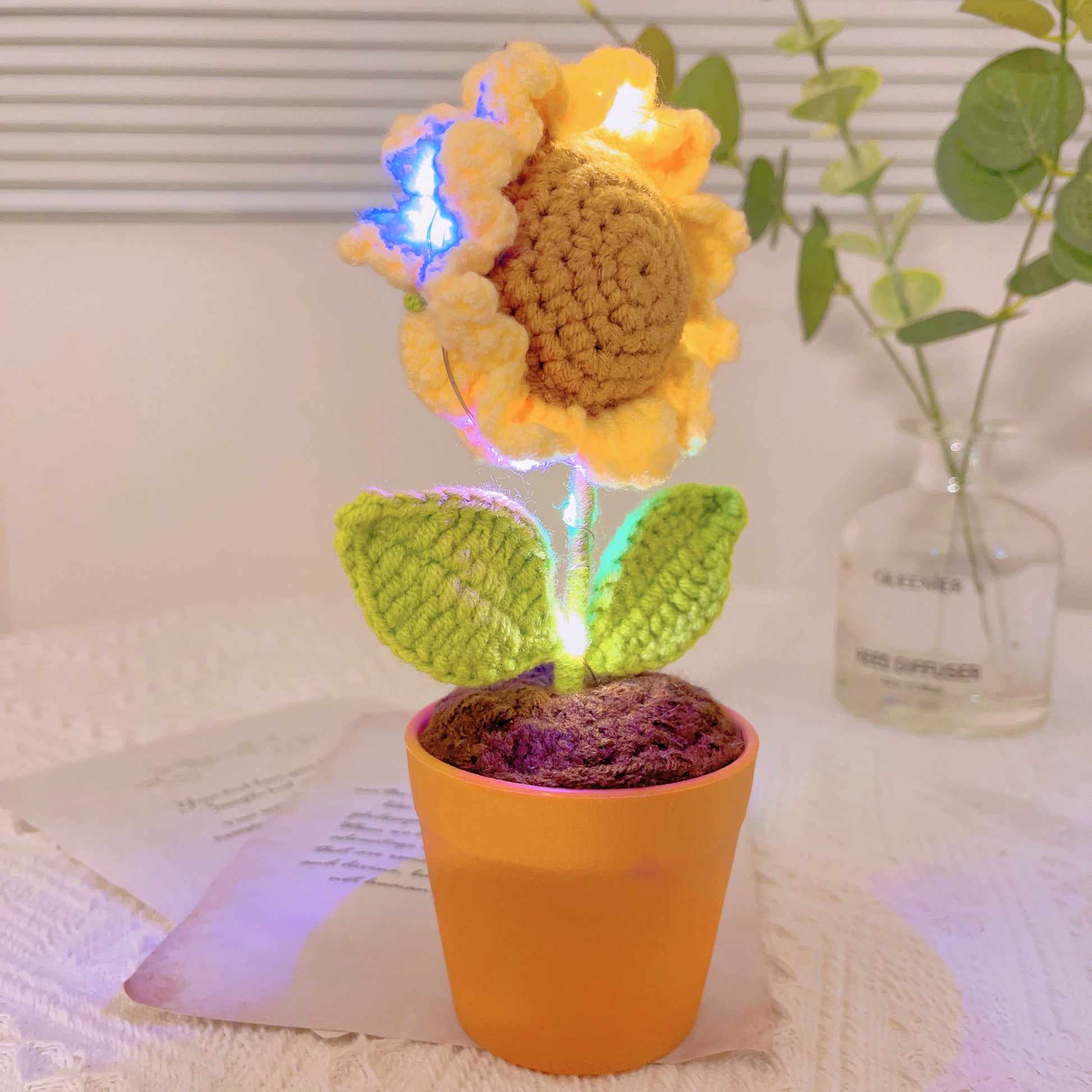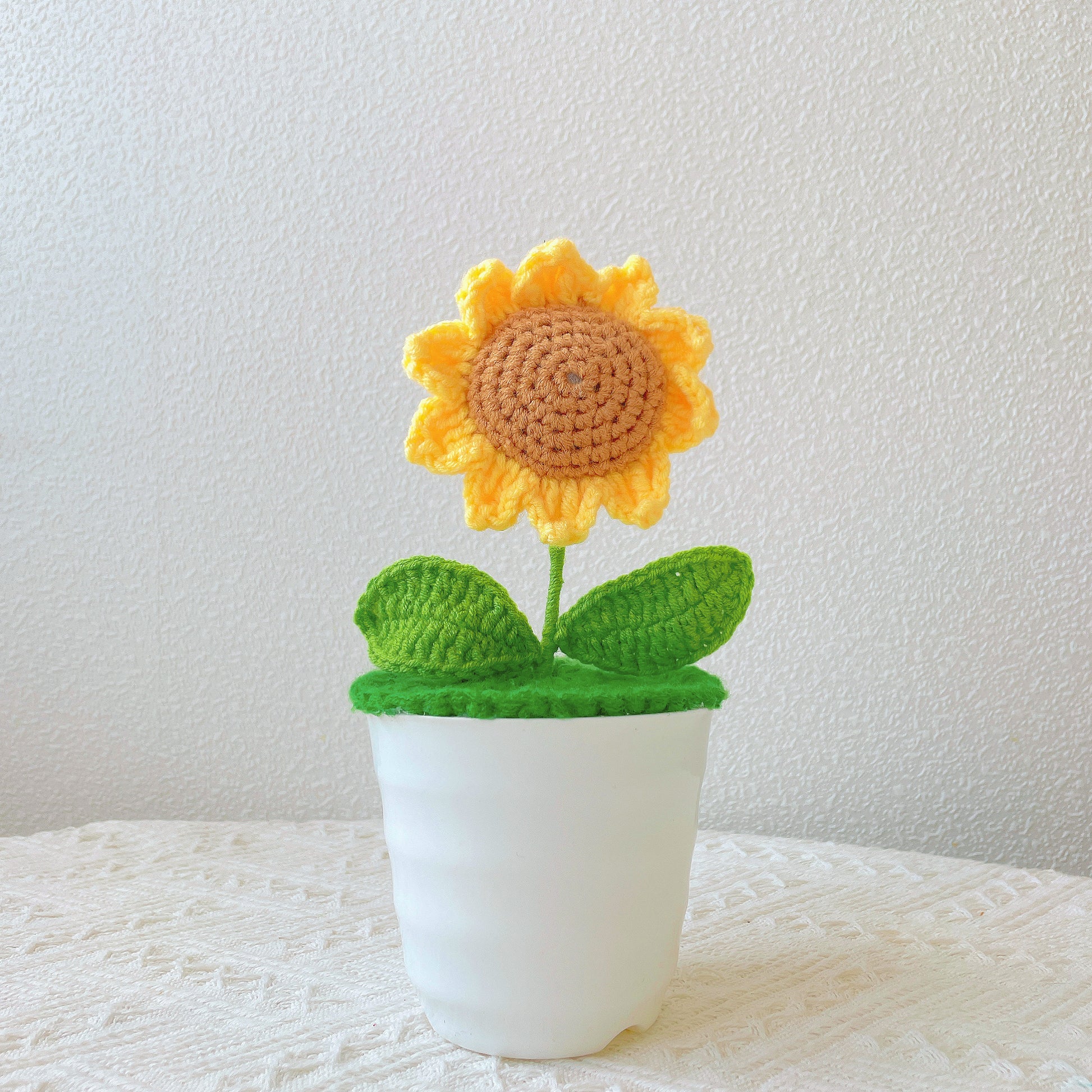 手工鉤針向日葵盆栽 - 擬真仿真花 - 獨特居家裝飾 - 植物愛好者完美禮物 - 匠心手作工藝
