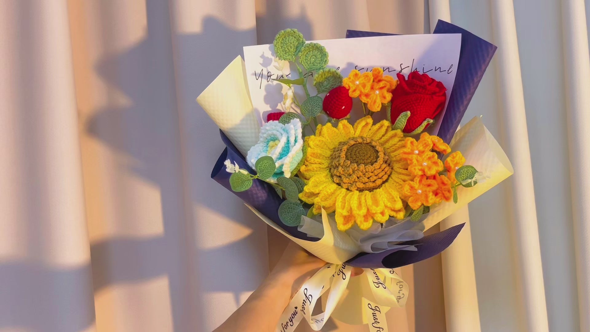 獨一無二的永恆手作花禮用這款精緻的手作鉤織花束,來慶祝人生中每個珍貴時刻吧!它擁有能維持一輩子的美麗。我們用心以高品質毛線鉤織,細膩還原每朵花的自然姿態,不只美,還是不過敏、無花粉的永續禮物。這束奢華的花禮包含了: