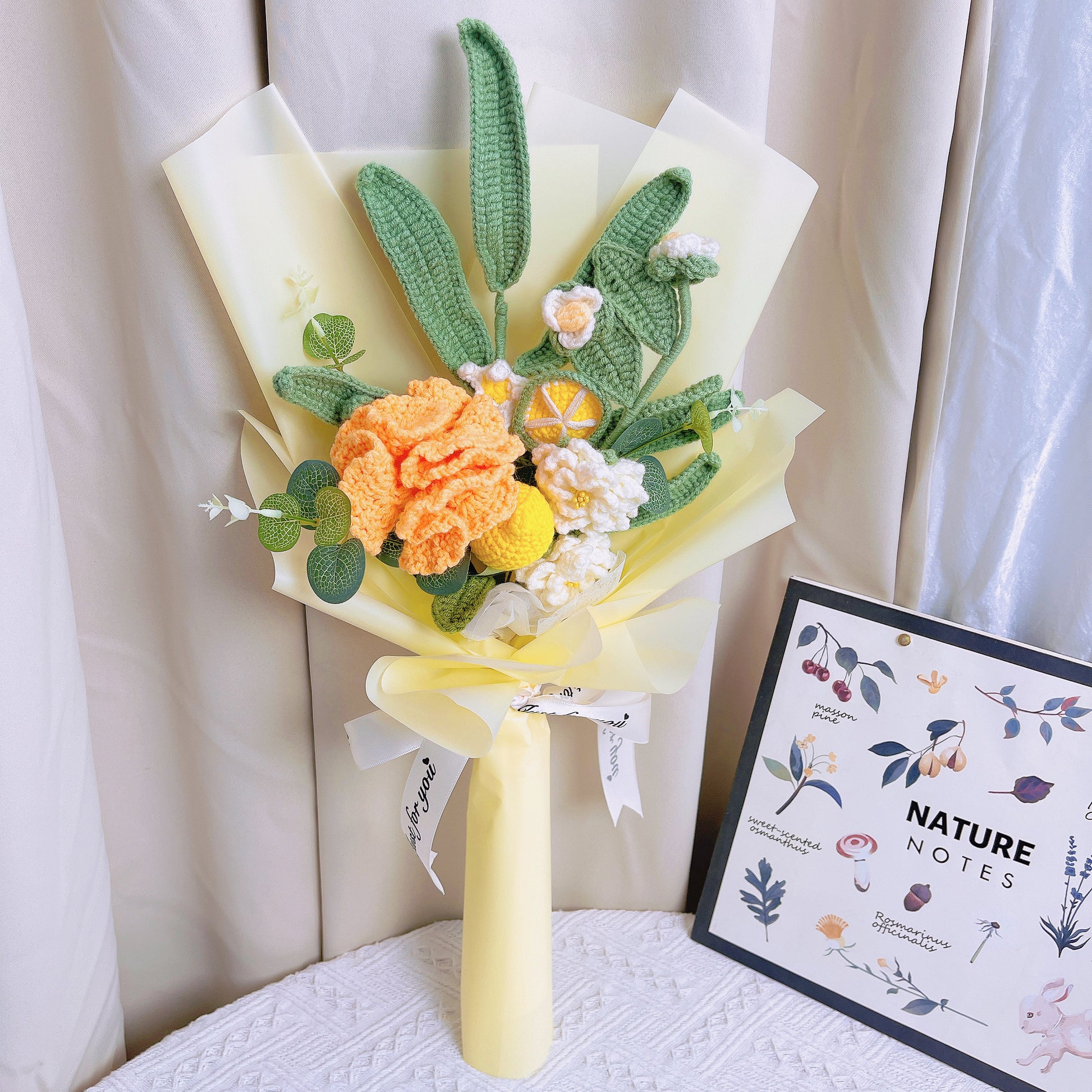 手工鉤針編織 檸檬香頌花束 - 檸檬、梔子花與康乃馨 純愛喜悅的象徵