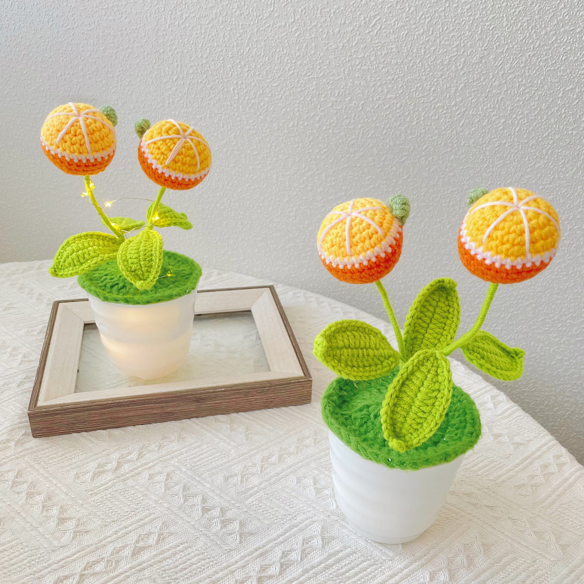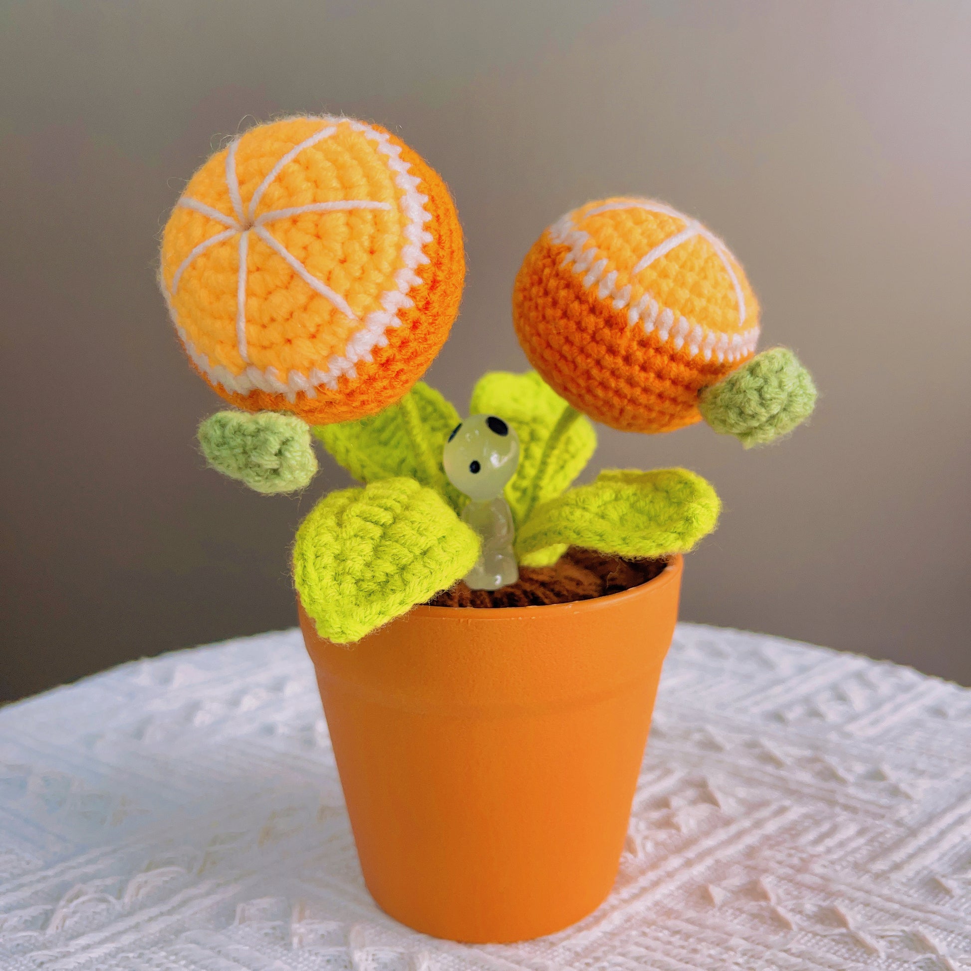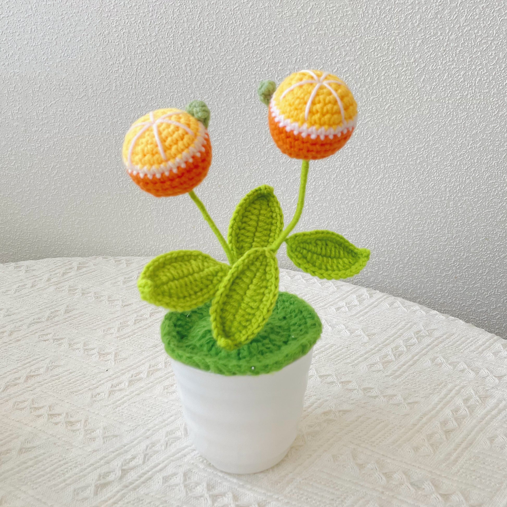 手工製作柑橘造型鉤針編織盆栽 - 可愛家居裝飾 - 逼真仿真植物 - 送植物愛好者的完美禮物 - 手工精製
