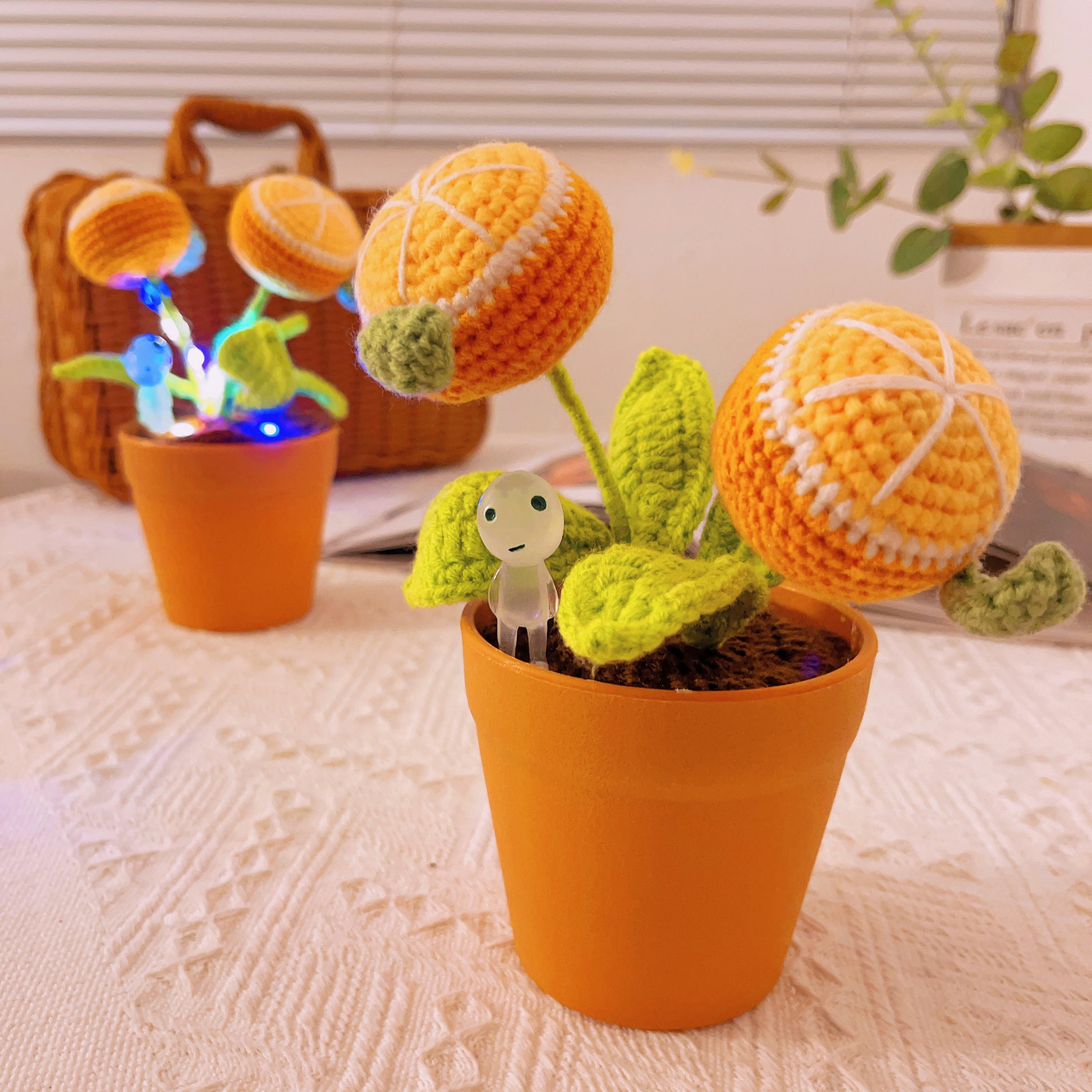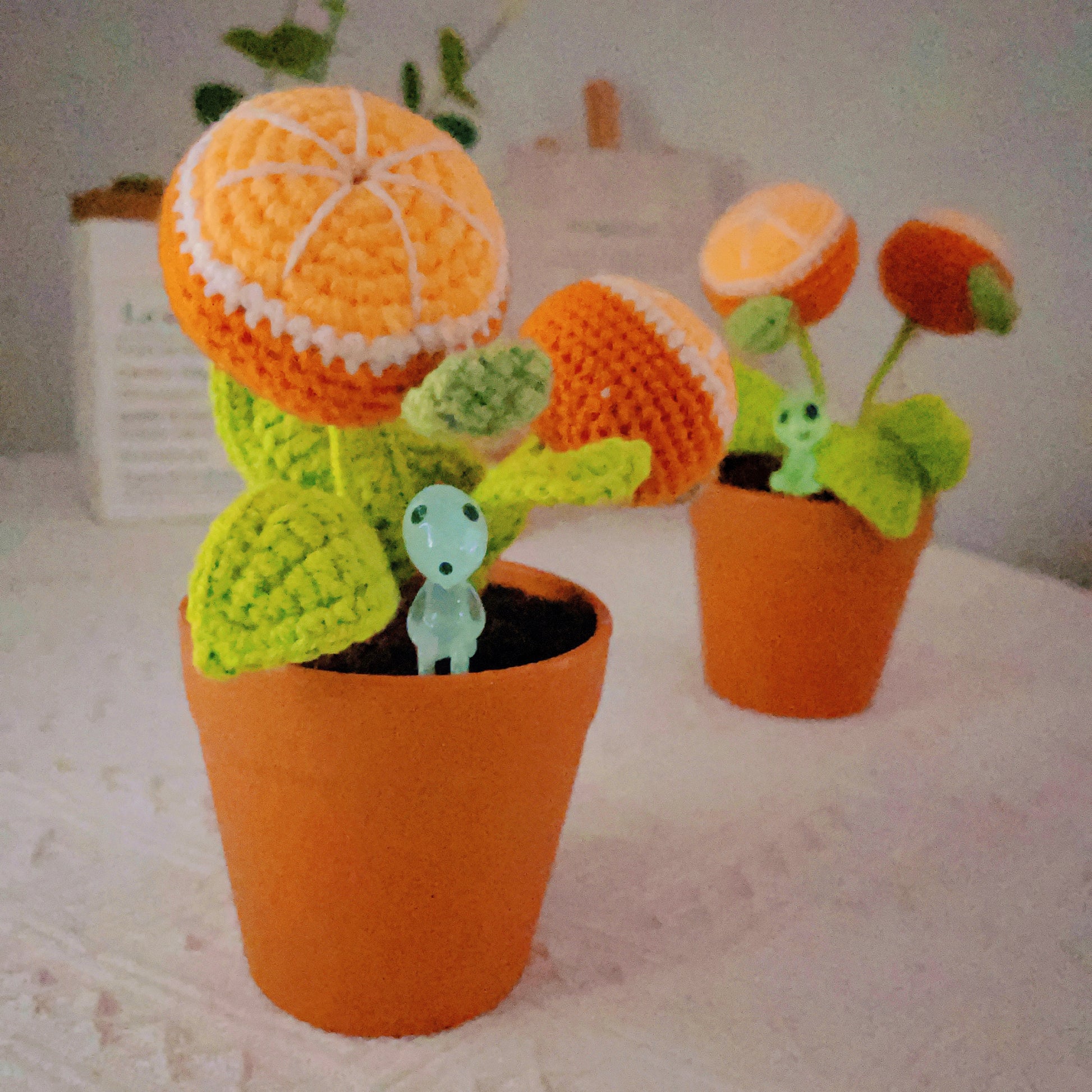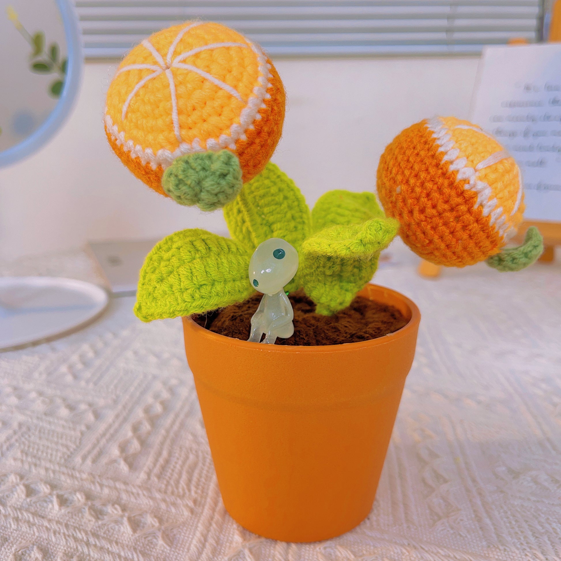 手工製作柑橘造型鉤針編織盆栽 - 可愛家居裝飾 - 逼真仿真植物 - 送植物愛好者的完美禮物 - 手工精製