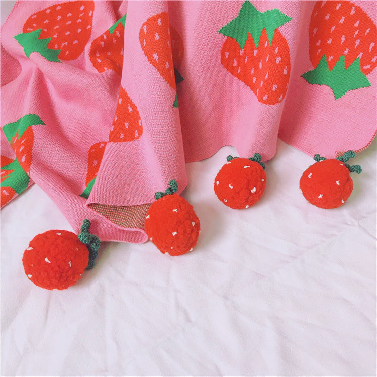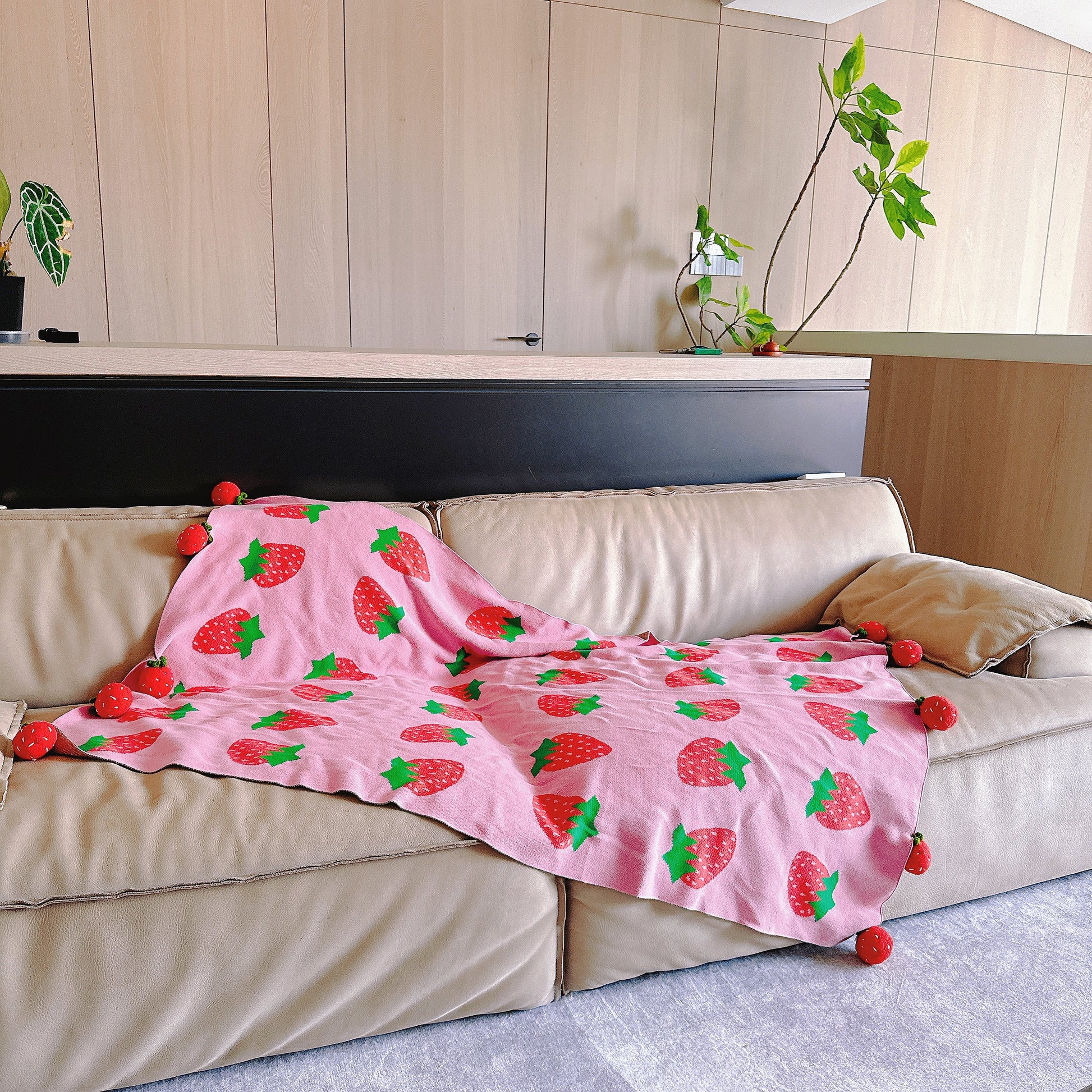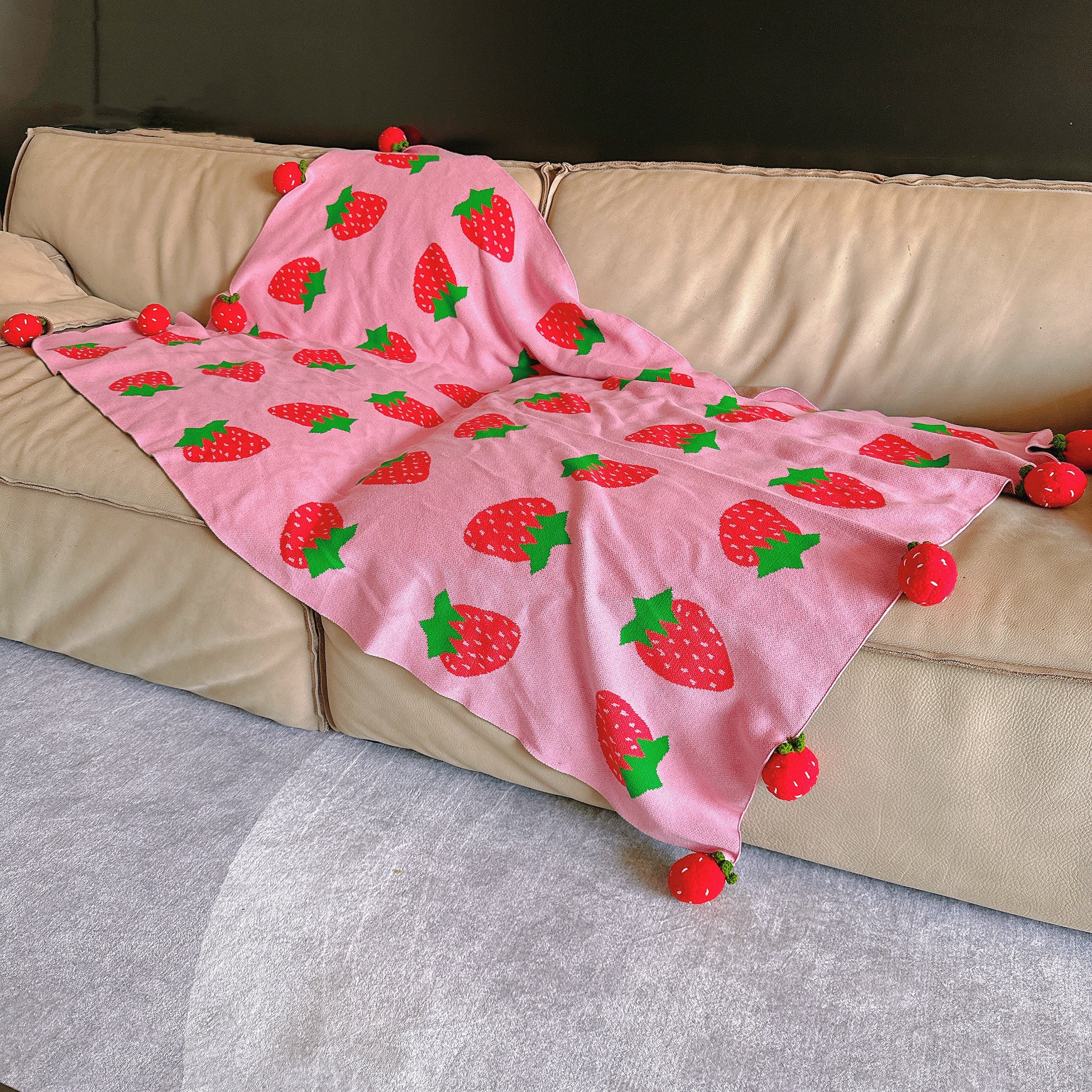 手工草莓圖案羊毛毯/毛毯-柔軟、厚實、多功能,適合床上、野餐或戶外使用