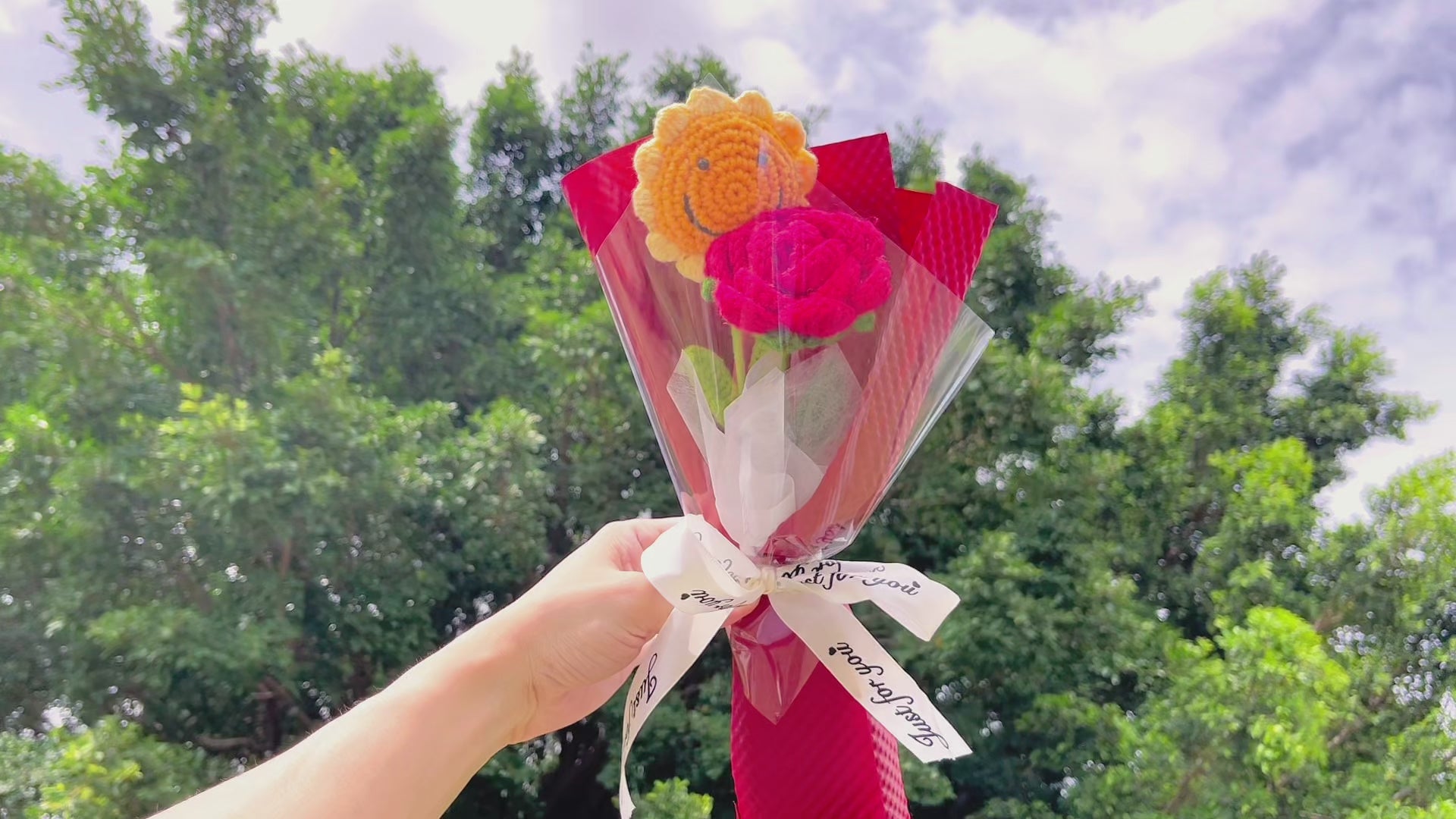 “歡樂之愛”手鉤向日葵玫瑰禮 - 手作笑臉向日葵與紅玫瑰,低過敏初見禮,情人節/週年紀念/浪漫場合專屬