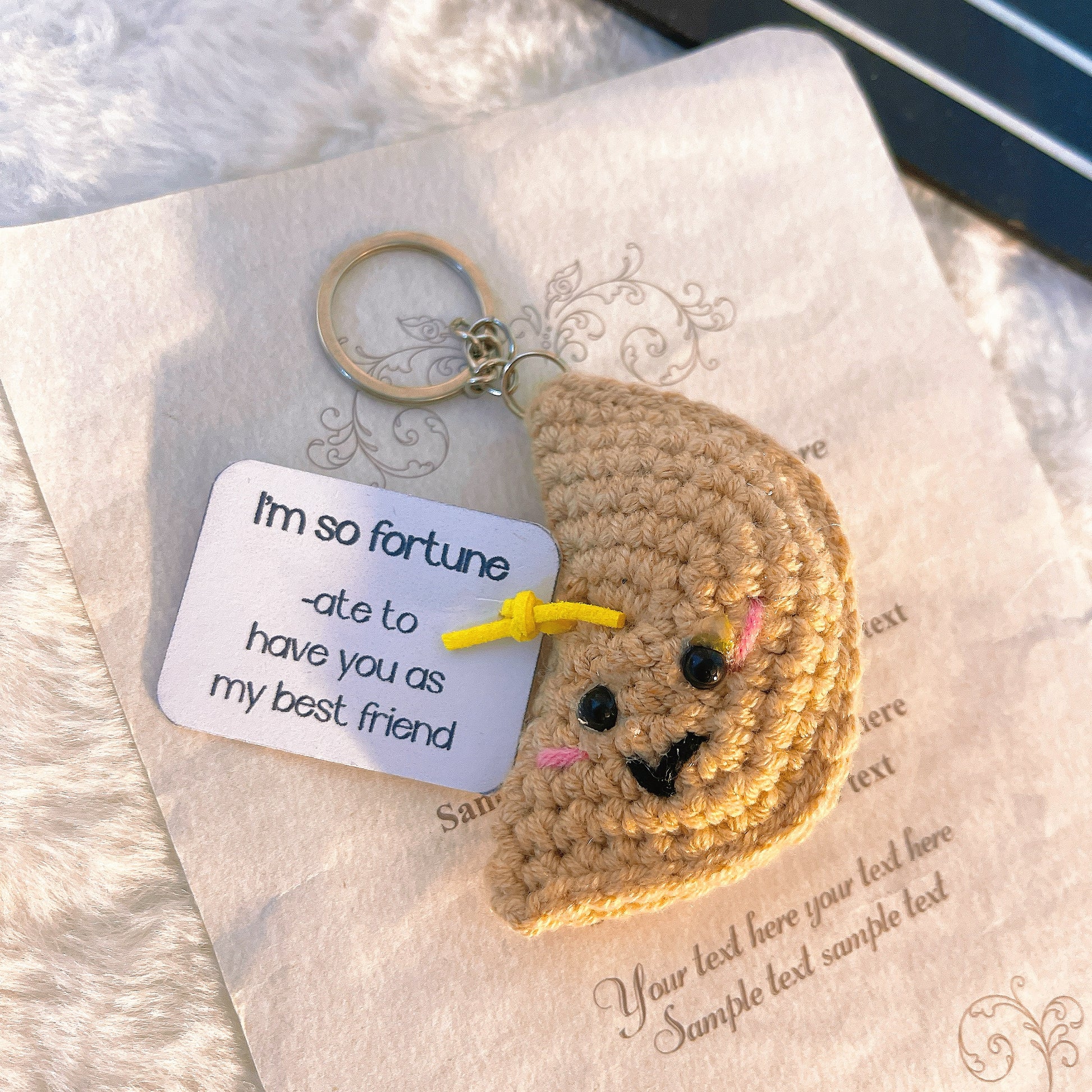 幸運籤餅鑰匙圈(附客製化小卡)|手作鉤針編織|正能量小禮物|送閨蜜・同事・生日・聖誕節禮物