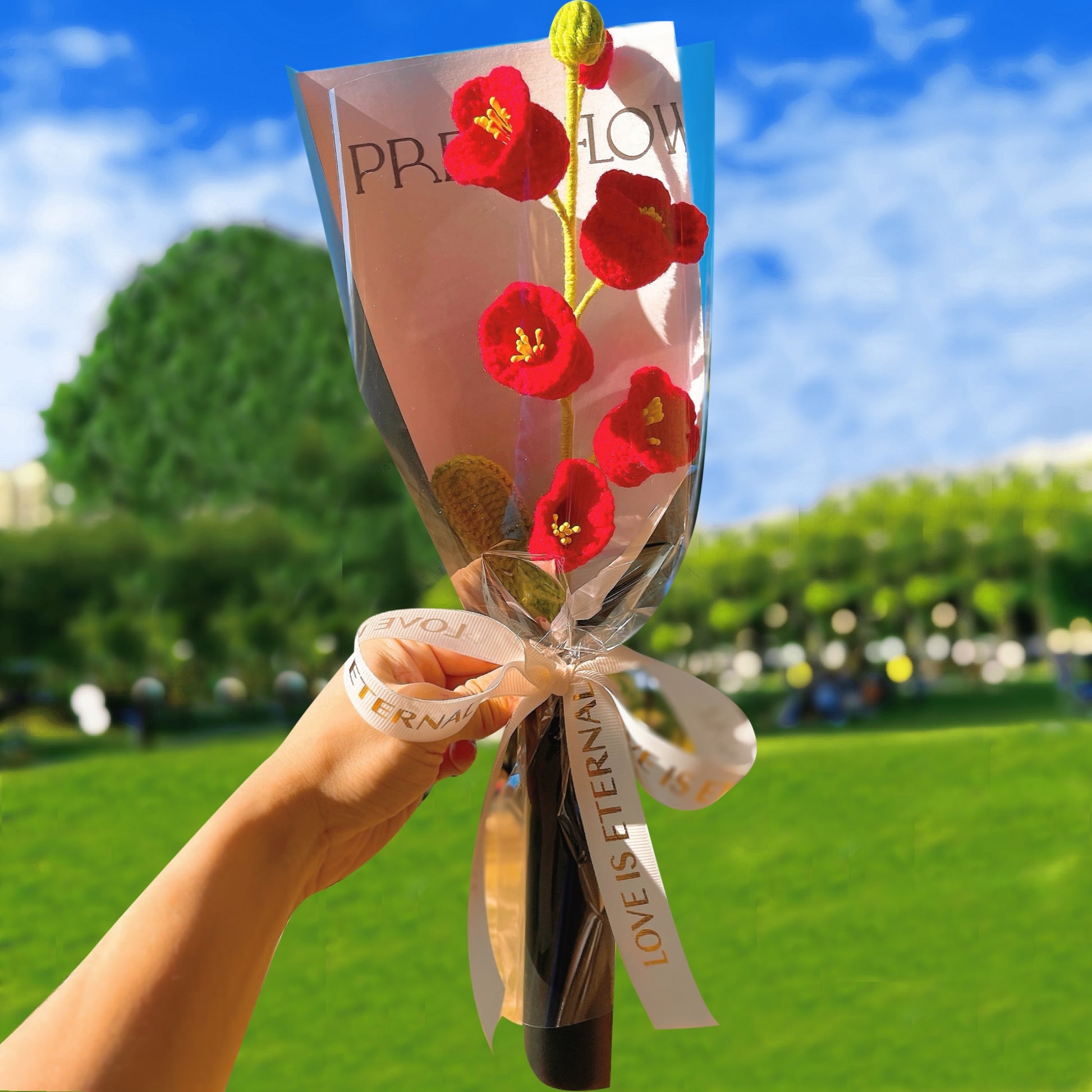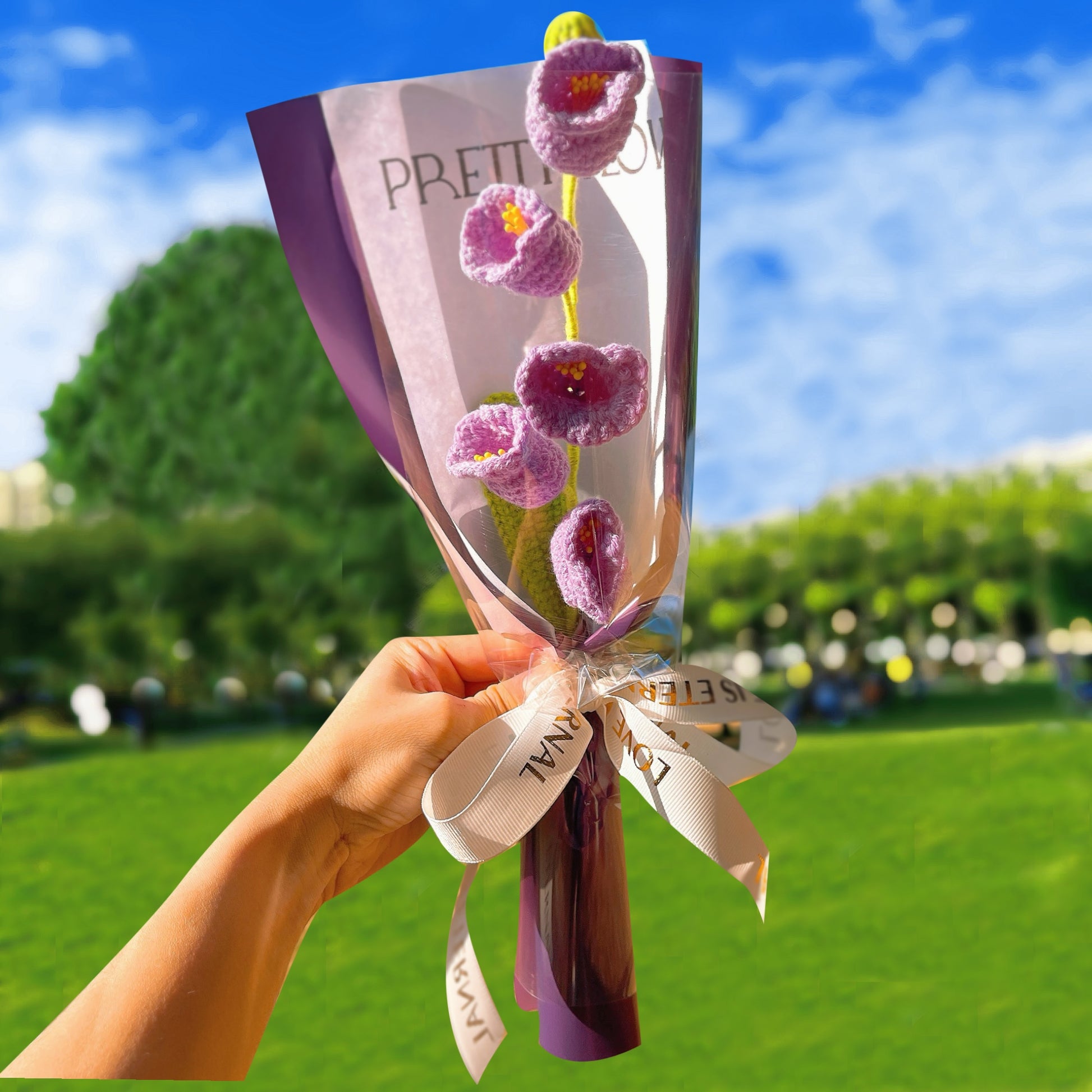 為您獻上極致優雅的五月誕生花禮!這款手工鉤織鈴蘭花束精選九種夢幻色系:純白、粉紅、豔紅、淡紫、深紫、淺黃、鵝黃、天藍與深海藍,每一朵都綻放獨特魅力。