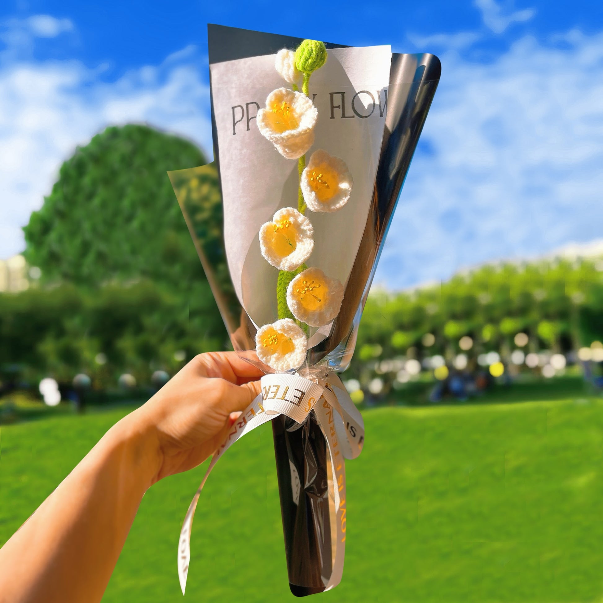 鈴蘭花語象徵純潔、幸福與甜蜜,是傳遞愛意的最佳使者。我們以精湛鉤織工藝重現這份美好,在傳統花語中融入現代時尚感,每束都是獨一無二的藝術品。