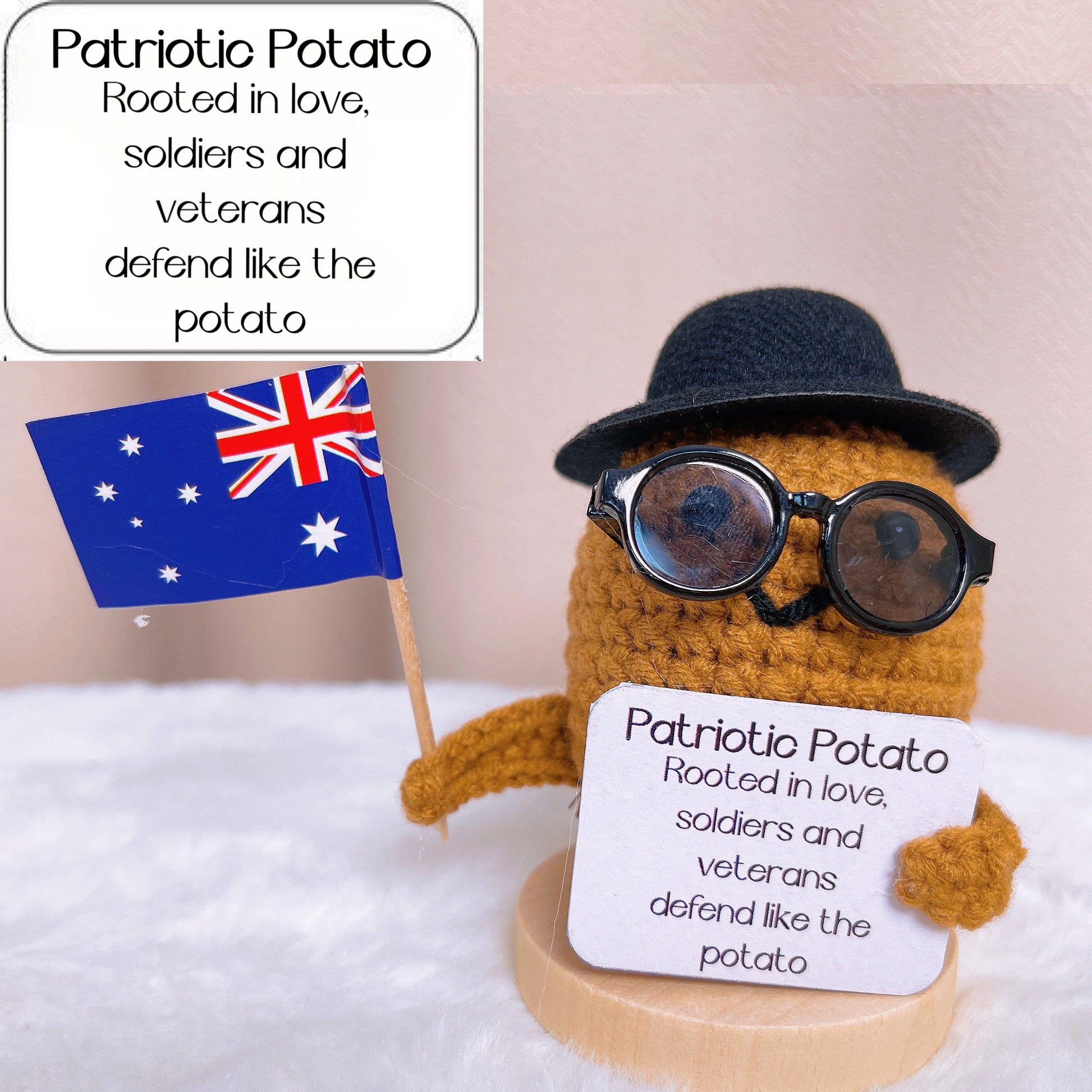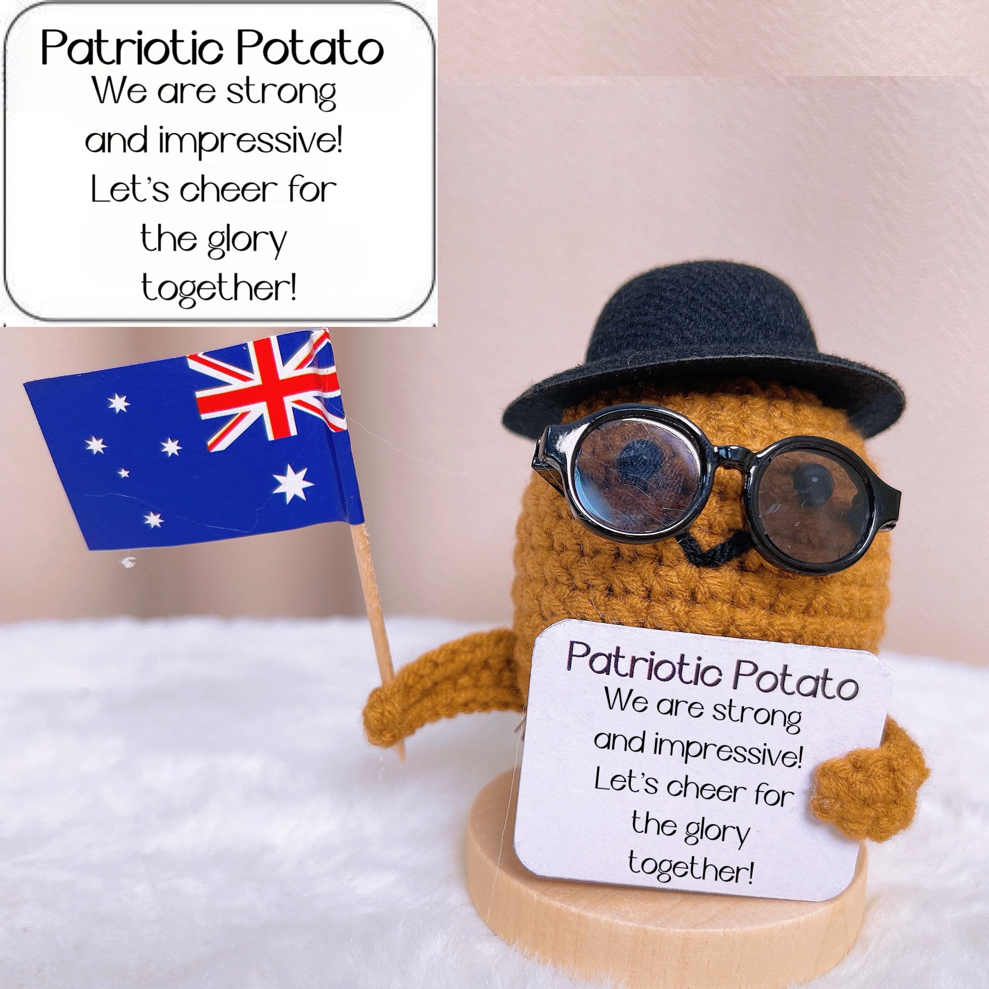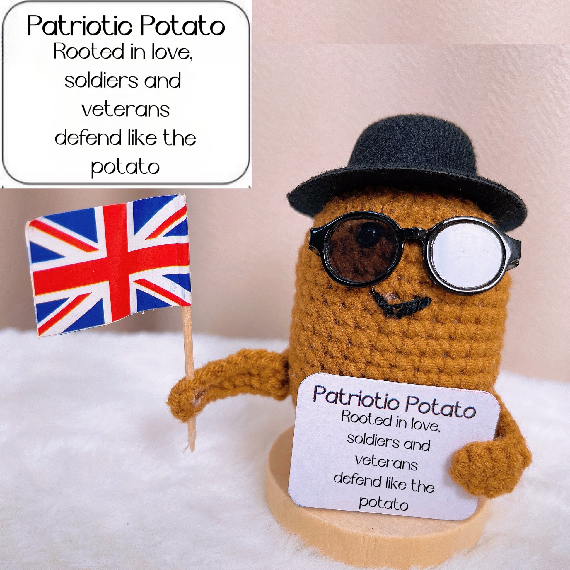 Patriotic Potato Crochet Plushie with National Flag - Unique, Eye-Catching Décor for Positive National Homeland Supporters Olympic Veteran Pride Soldiers Memorial Independence Day USA UK Australia