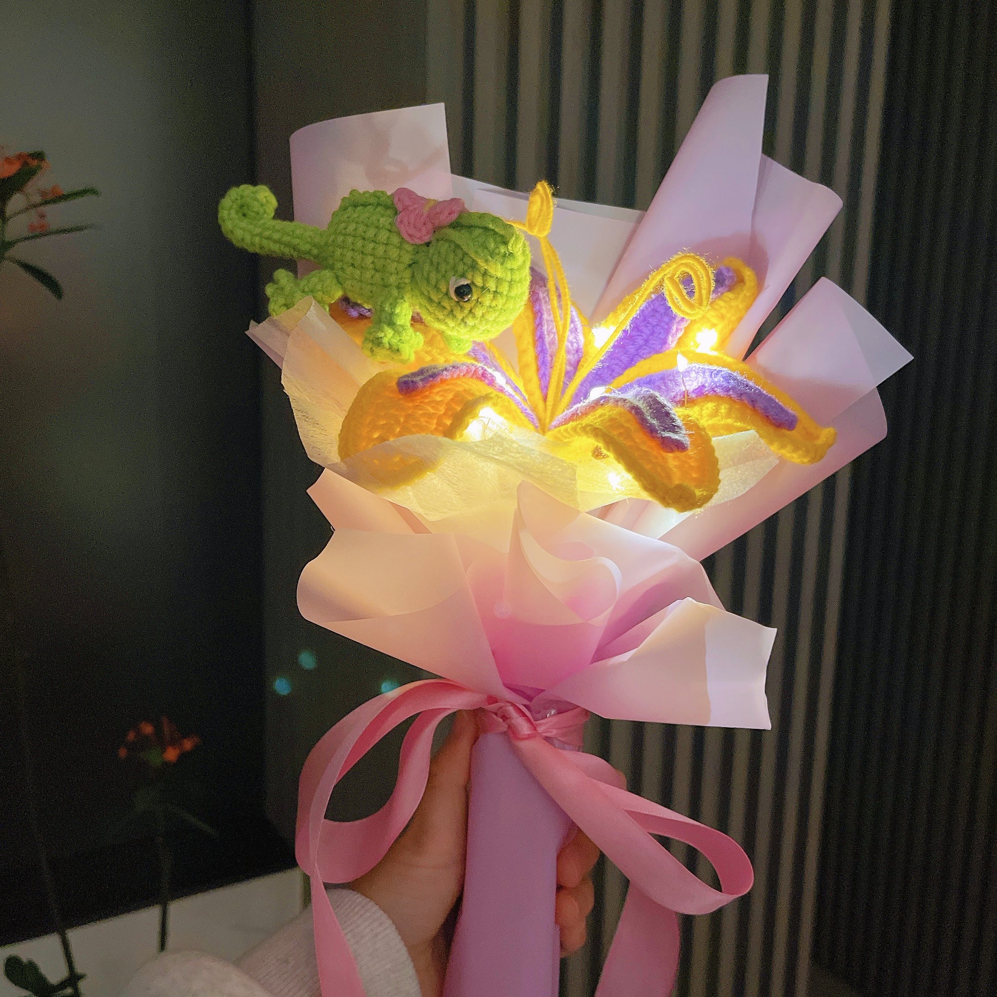 [Shipped from AU]Crochet Sundrop Chameleon Flower Stake Bouquet