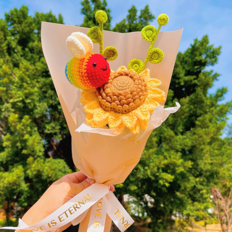 [Shipped from AU]Handmade Crocheted Spring Theme Bouquet of Sunflowers, Eucalyptus Leaves, and Colorful Bee - A Unique GIFT for Any Occasion
