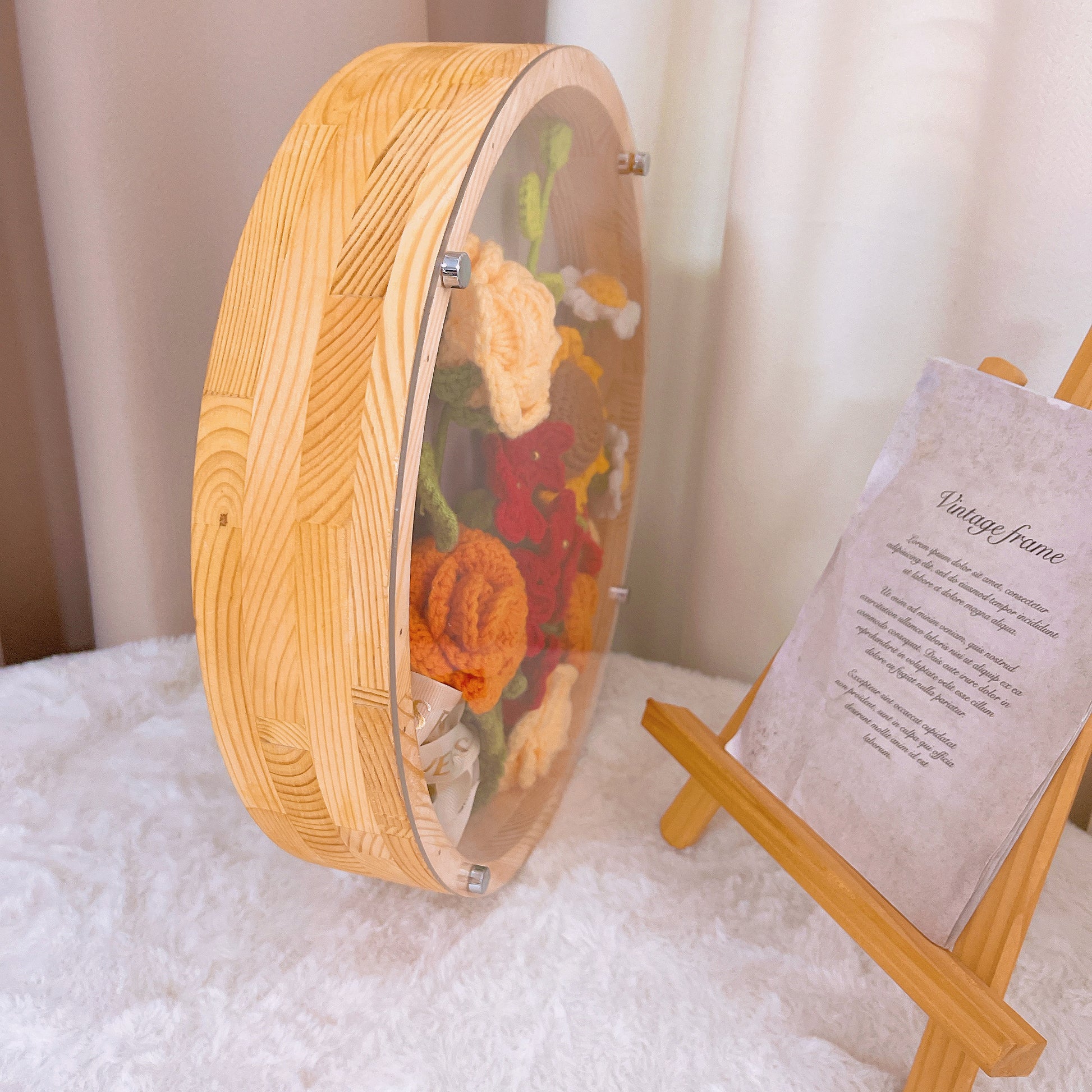 我們的手工鉤針編織花卉相框裝飾,不僅美觀,更耐用持久。每朵花都牢固地固定在木質相框上,確保多年不墜。鉤針編織所使用的高品質毛線,亦經久耐用,讓您能長久欣賞這件作品。將此裝飾品加入您的手工與工藝收藏,全年都能享受如暖風拂面般的美好。