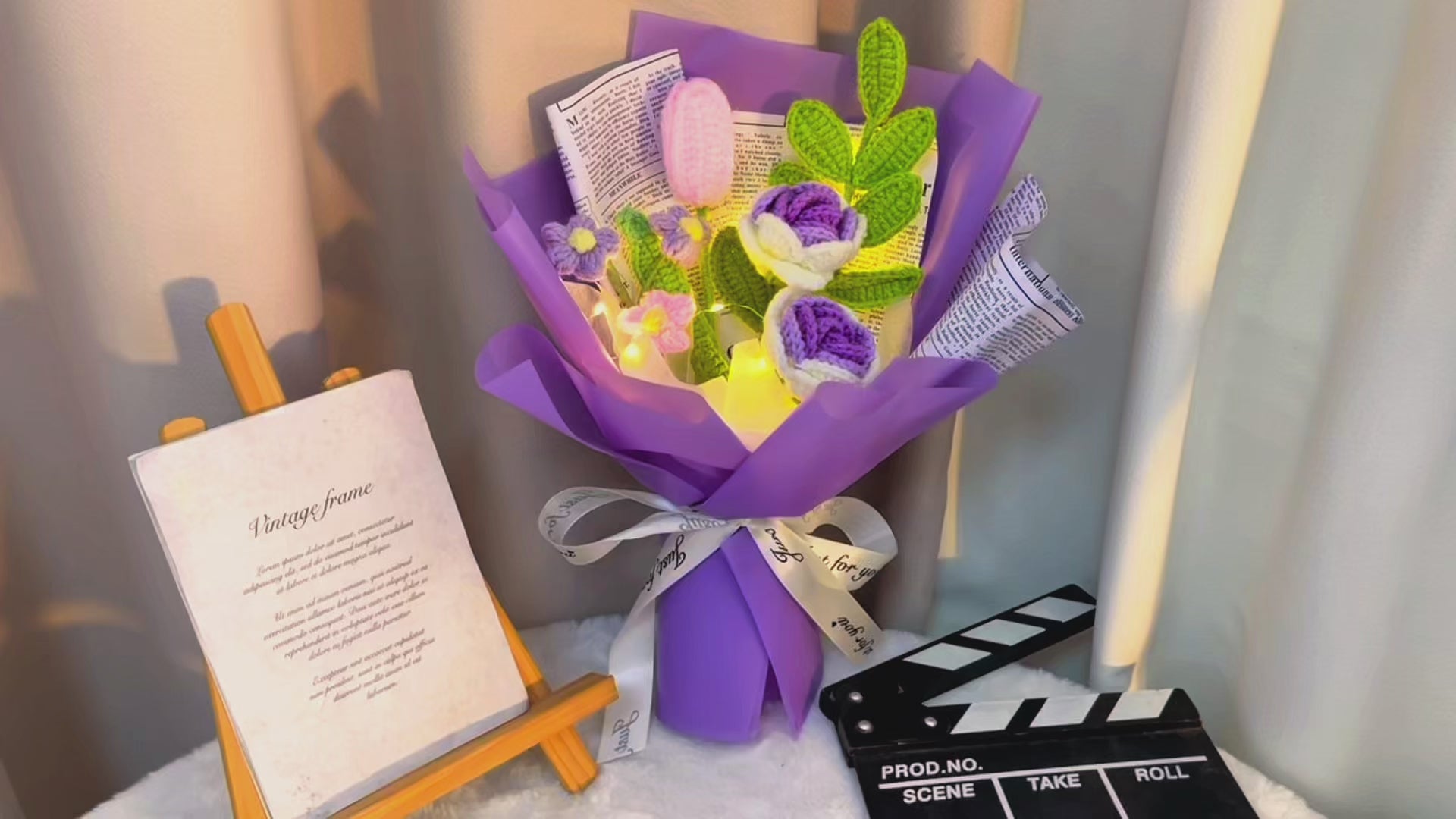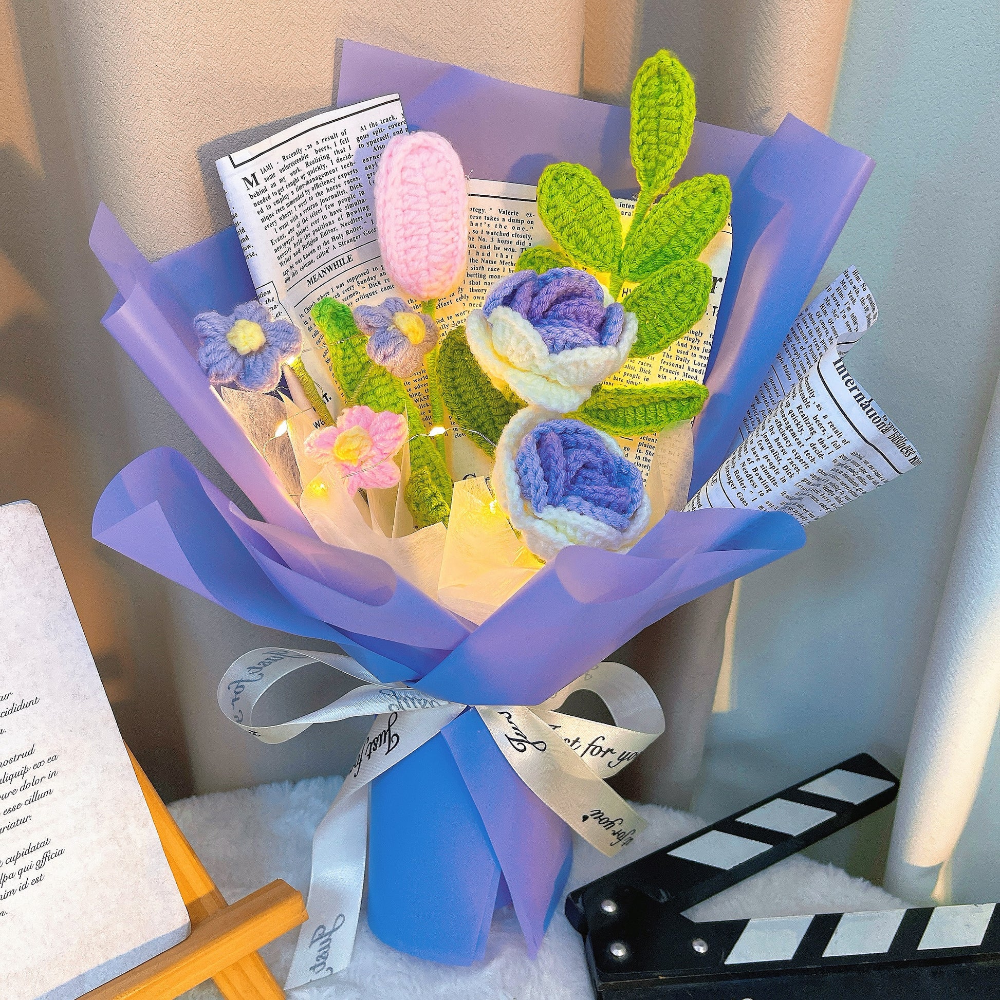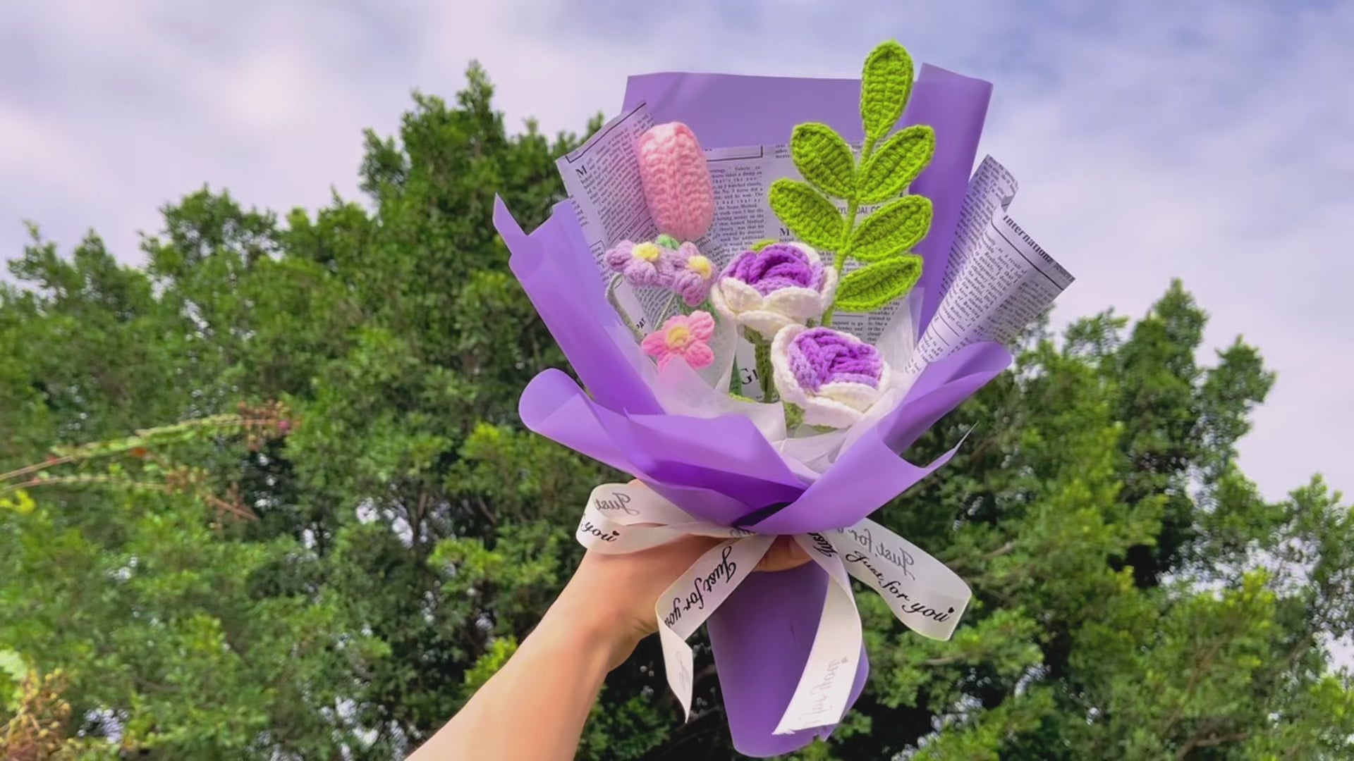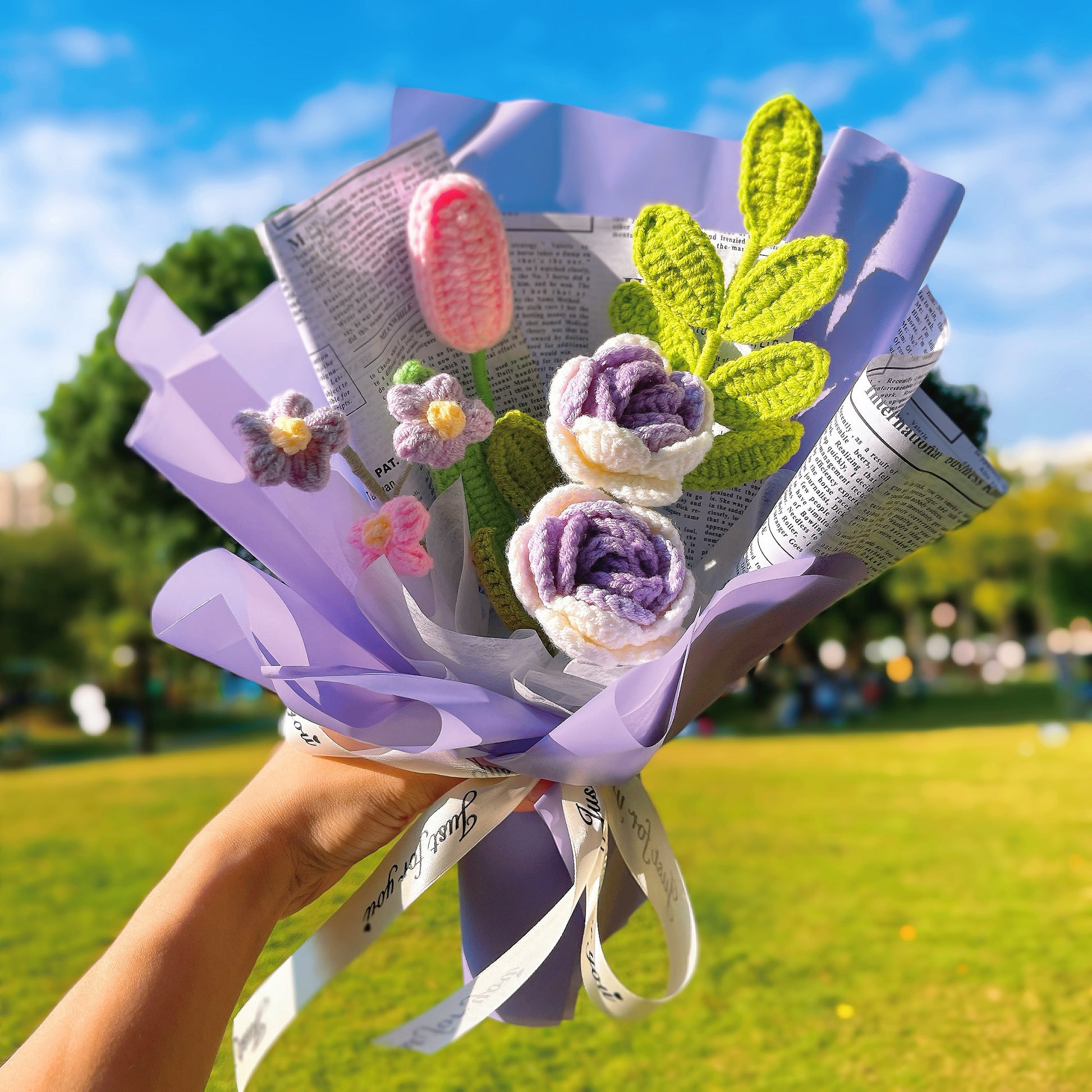 這束紫色花卉花束,是任何場合的完美禮物,無論是生日、週年紀念、畢業典禮,還是單純想表達真摯的感激之情。它是一份貼心且珍貴的禮物,將被長久珍藏。別再猶豫,快為某人帶來歡樂與驚喜——今天就從「紫霧花甸」訂購您的手工鉤針編織花卉花束吧!